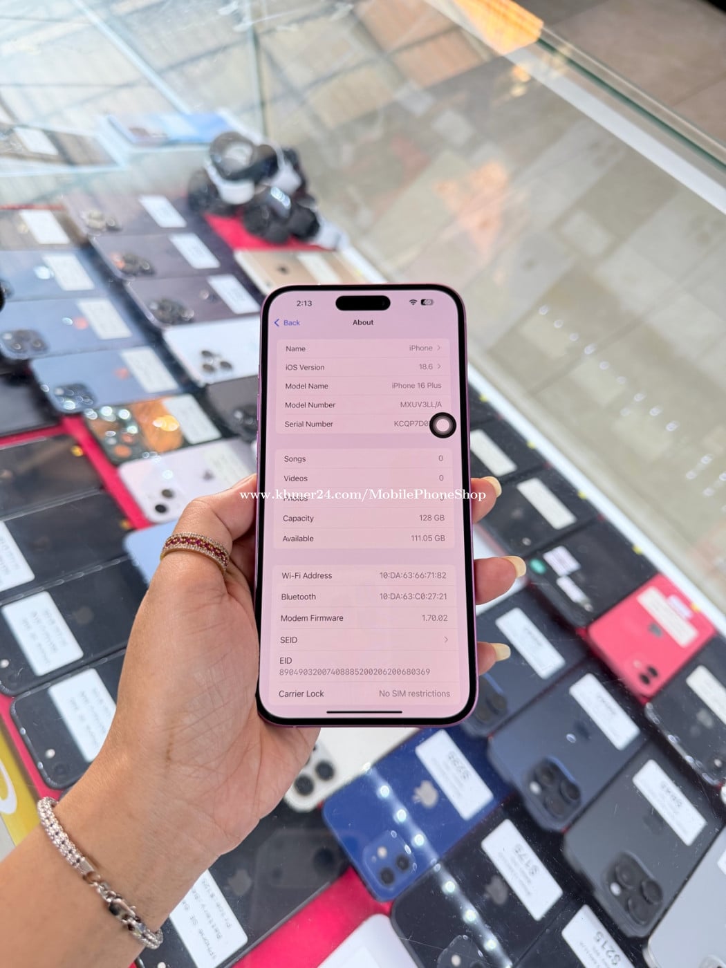 iPhone 16 Plus 128G LL/A Esim សំនុំហ្ស៊ីន មួយទឹកអាមេរិក តម្លៃ: $699 (តម្លៃមិនចចារ) Free: ឆ្នាំងសាក, ស្រ្គិន & ខេស(ធានា1សប្ដាហ៍) ទីតាំង: ផ្លូវ160 , ស្តុបទេពផន , ភ្នំពេញ 📲Tel: 098200xxxClick To Call 📍Maps: https://maps.app.goo.gl/8YoH7dAZ6D2egm9v7?g_st=ic