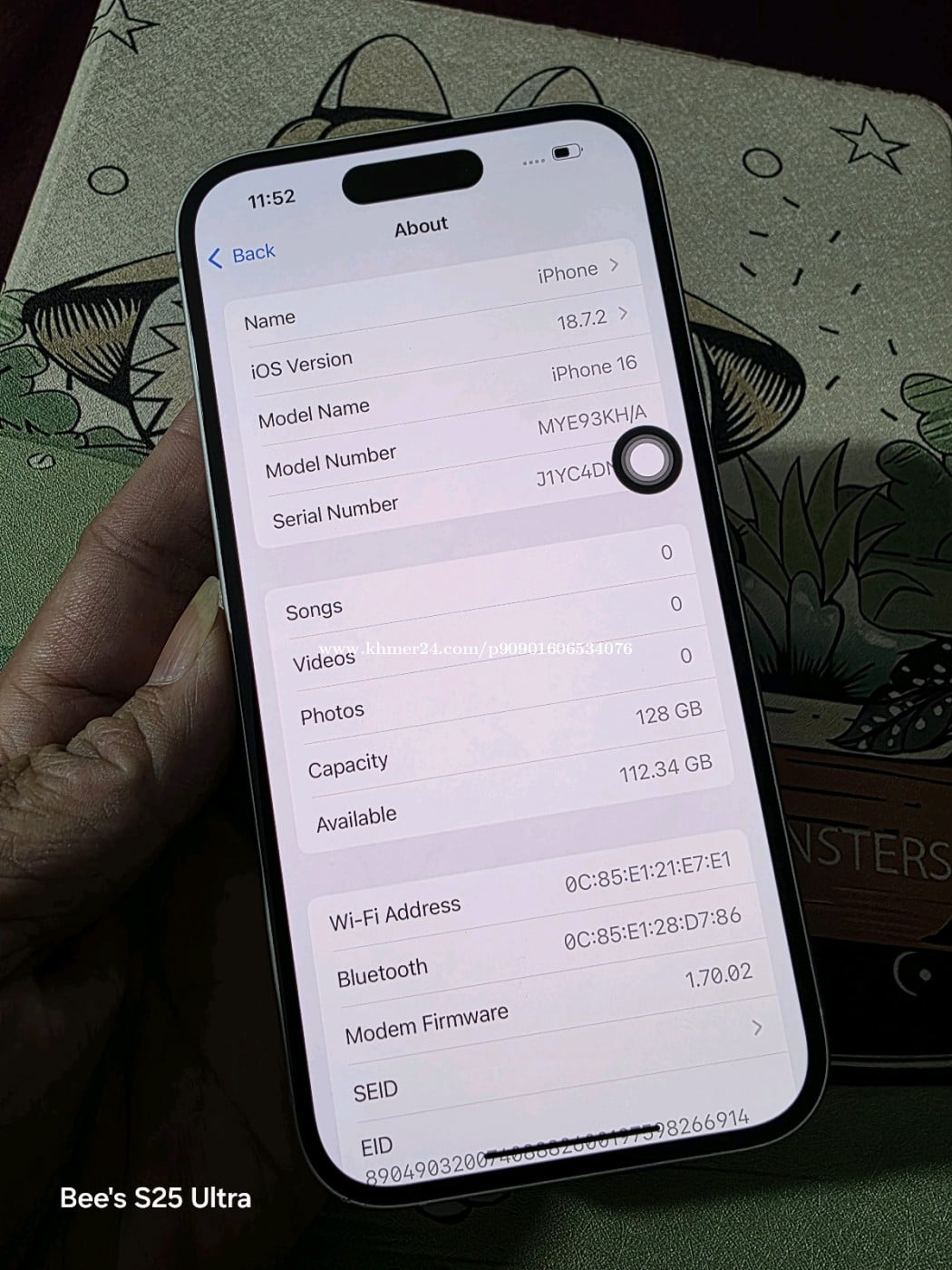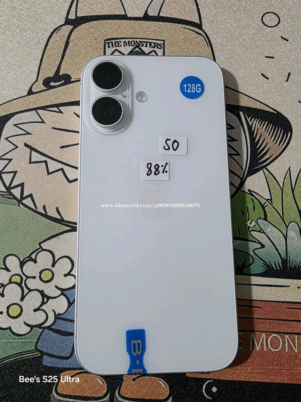 iPhone 16 128g ពណ៍ស សំនុំណែនស្អាត ថ្មស៊ីន 88% Sim1+Esim លក់ 599$ Tel: 093989xxxClick To Call