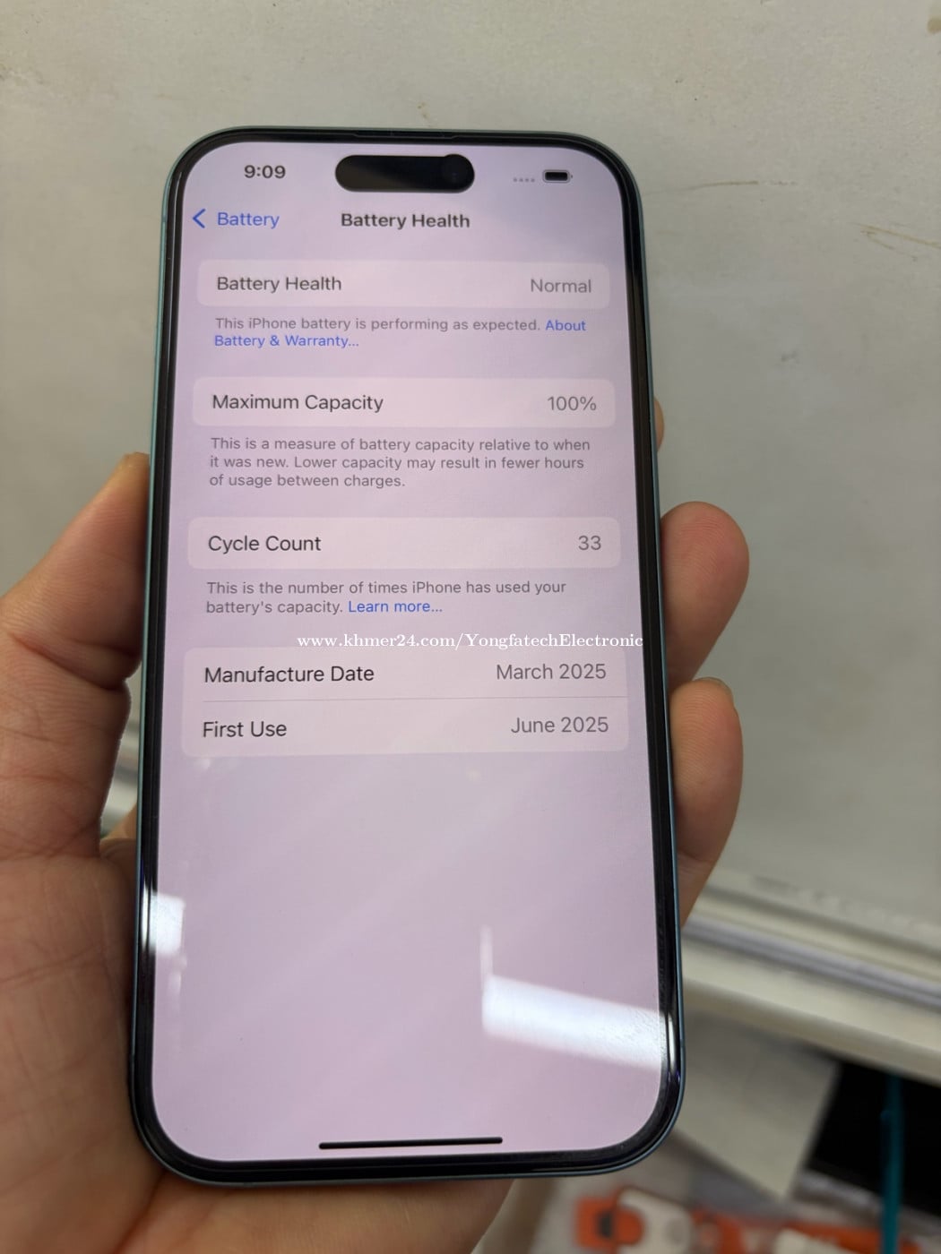 iPhone 16 128gb មួយទឹកស្អាត ថ្ម 100% សាកបាន34ដង ថែម case និង screen protector. អាចរកទិញបាននៅហាងលក់ទូរស័ព្ទដៃ និង កុំព្យូរទ័រ យ៉ុងហ្វាថេក YONGFATECH 47Eo, street 182 ទល់មុខបេនឡានក្រុងកាពីតូលក្បែរផ្សារអូឬស្សី ☎️ 012995xxxClick To Call/ 070589xxxClick To Call 🌎 http://yongfatech.com 📍https://goo.gl/maps/texfqRy2t9wvAajJ6 ផ្ញេីរសារមកកាន់Telegram ខាងក្រោម 📩https://t.me/yongfatech