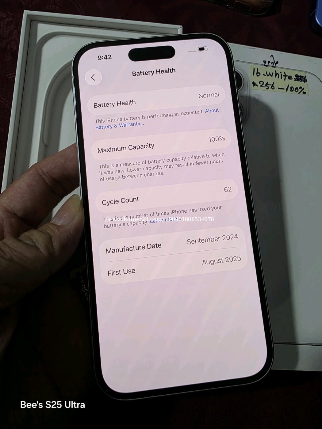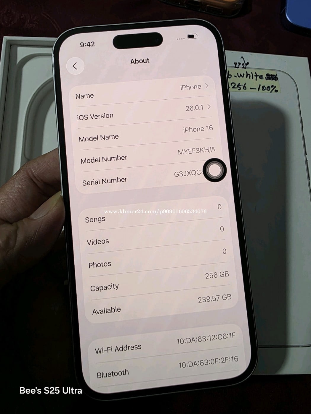 iPhone 16 256g សំនុំស៊ីនណែនស្អាត ថ្មស៊ីន 100% សាកថ្មបាន 62ដង លក់ 659$ Tel: 093989xxxClick To Call