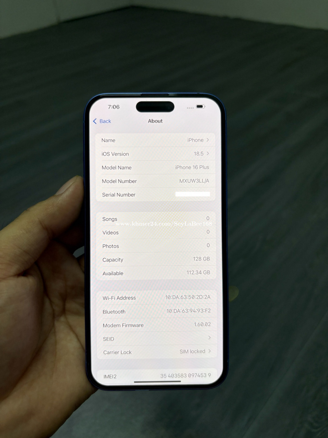 iPhone 16 Plus មួយទឹក 128G lock simប៉ុន្តែមិនបាច់ទ្រាប់ទ្រនាប់ដាក់សុីមប្រើតែម្ដង (ប្រើបានសុីម2) Free Case, Screen, ឆ្នាំងសាក,លែន អ្វីដែលអ្នកឃើញគឺជាអ្វីដែលអ្នកទទួលបាន អីវ៉ាន់នៅក្នុងរូបយ៉ាងម៉េច នៅក្រៅគឺយ៉ាងនោះ។ 👉ធានាលើ ថាច់ និងម៉ាស៊ីន ១ខែ 📍ទីតាំង ទឹកល្អក់៣ ទួលគោក ភ្នំពេញ Tell:086908xxxClick To Call Telegram Tell:0888708xxxClick To Call Telegram: https://t.me/SeyLa_Bee Channel: https://t.me/iPhoneBSL