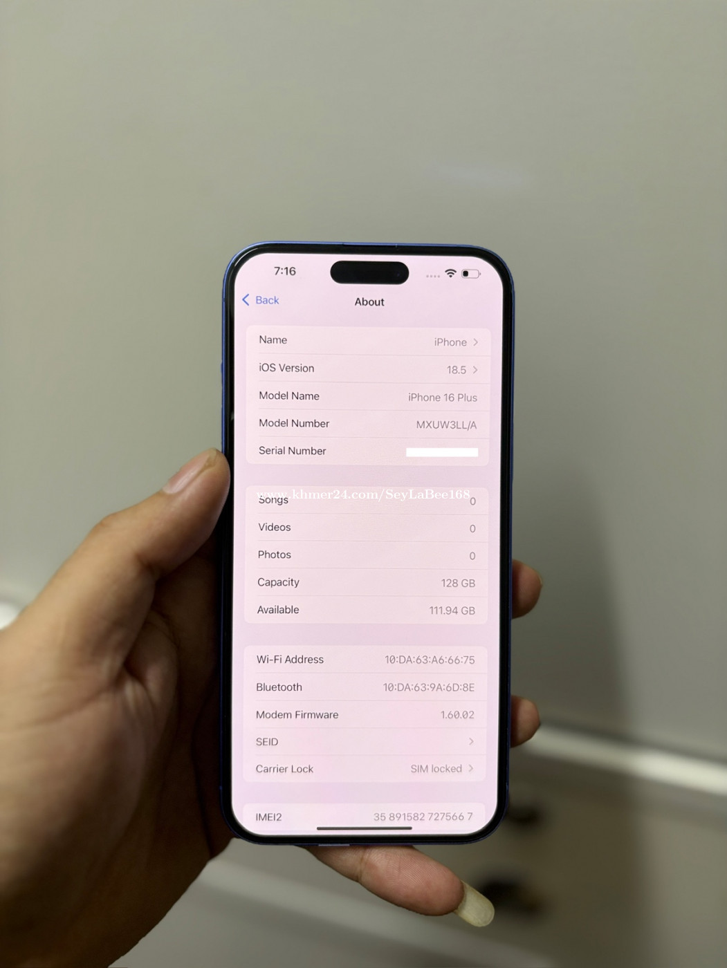 iPhone 16 Plus 128G មួយទឹកlock simប៉ុន្តែមិនបាច់ទ្រាប់ទ្រនាប់ស៊ីមដាក់ស៊ីមប្រើយកម៉ង( សុីម2 ) Free Case, Screen, ឆ្នាំងសាក,លែន អ្វីដែលអ្នកឃើញគឺជាអ្វីដែលអ្នកទទួលបាន អីវ៉ាន់នៅក្នុងរូបយ៉ាងម៉េច នៅក្រៅគឺយ៉ាងនោះ។ ធានាលើ ថាច់ និងម៉ាស៊ីន 1ខែ ទីតាំង ទឹកល្អក់៣ ទួលគោក ភ្នំពេញ Tell:086908xxxClick To Call Telegram Tell:0888708xxxClick To Call Telegram: https://t.me/SeyLa_Bee Channel: https://t.me/iPhoneBSL