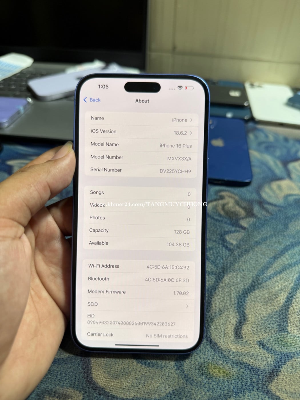 iPhone 16 Plus 128G XA សំណុំសុីនណែន ស្អាត98.99% លក់690$