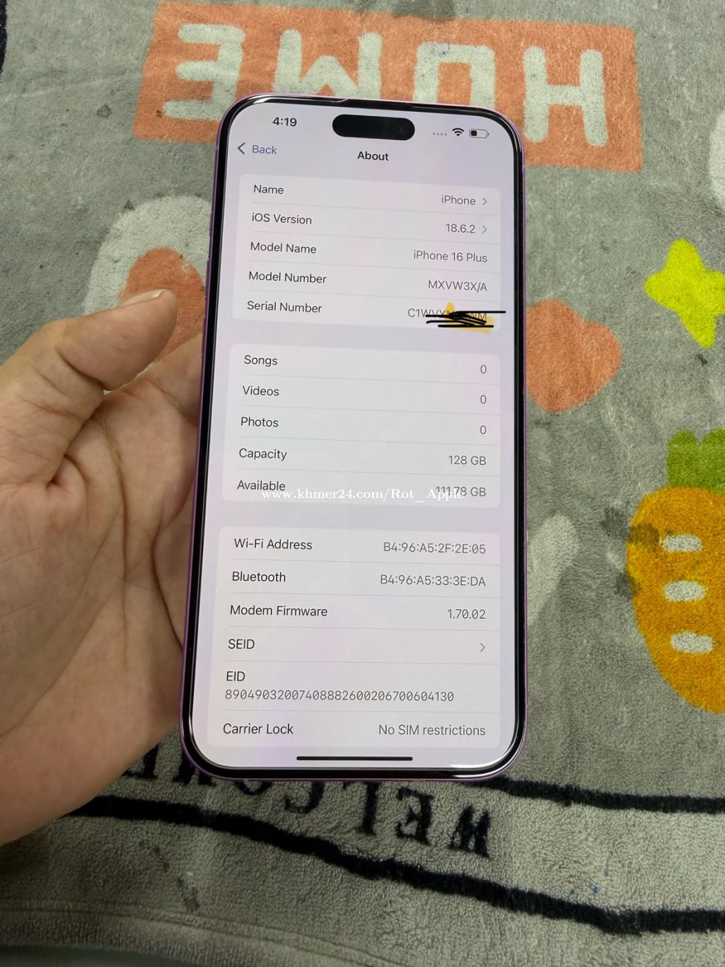 iPhone 16 Pluse memory 128G XA battery health 94% original all