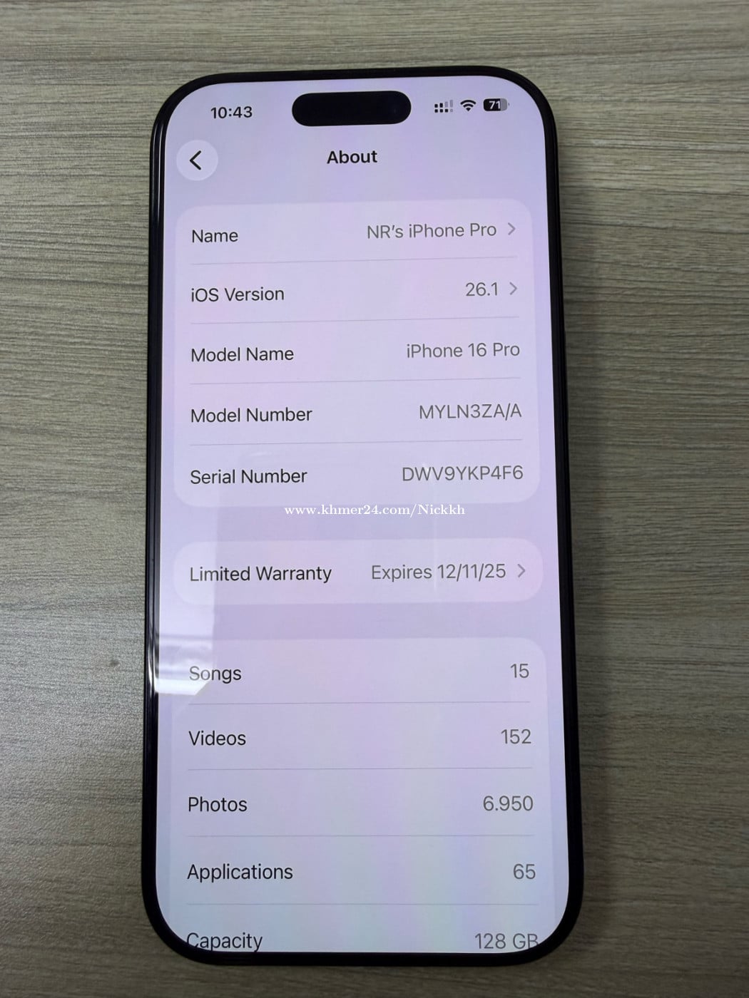 iPhone 16 Pro ពណ៌ខ្មៅ ZA ស៊ីមពីរ 128gb ស្អាត99.99% សុខភាពថ្ម96% មានប្រអប់ និងខ្សែហ្ស៊ីន គ្មានស្នាមឆ្កូត ឬកំពិត សាណុំហ្ស៊ីនមិនដែលជួសជុល។ លក់ព្រោះដូរសេរ៊ី។