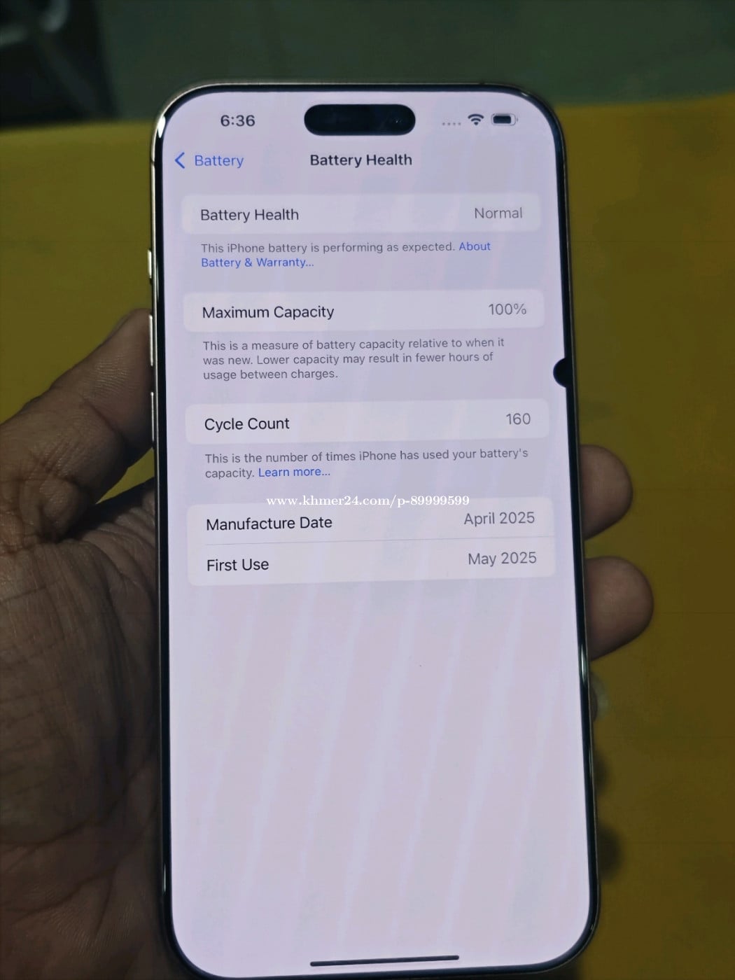 Iphone 16 pro max (ZA)មួយទឹកស្អាត 99% គ្រាន់តែអេក្រង់អុជខ្មៅបន្តិច ថ្មនៅ 100%