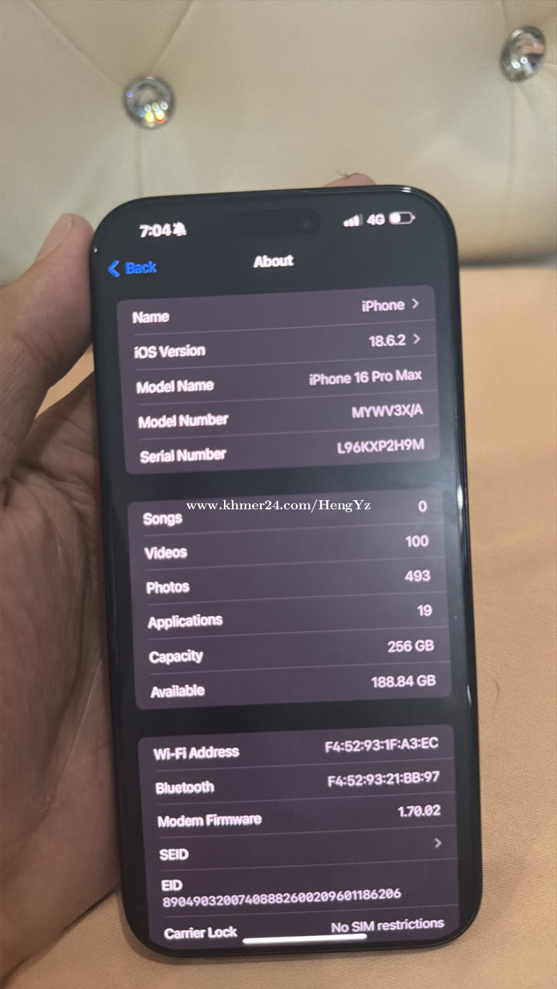 Iphone 16 pro max 256gb Cod X/A ថ្មី 99% ថ្ម 100%សាណុំZin 900ដាច់