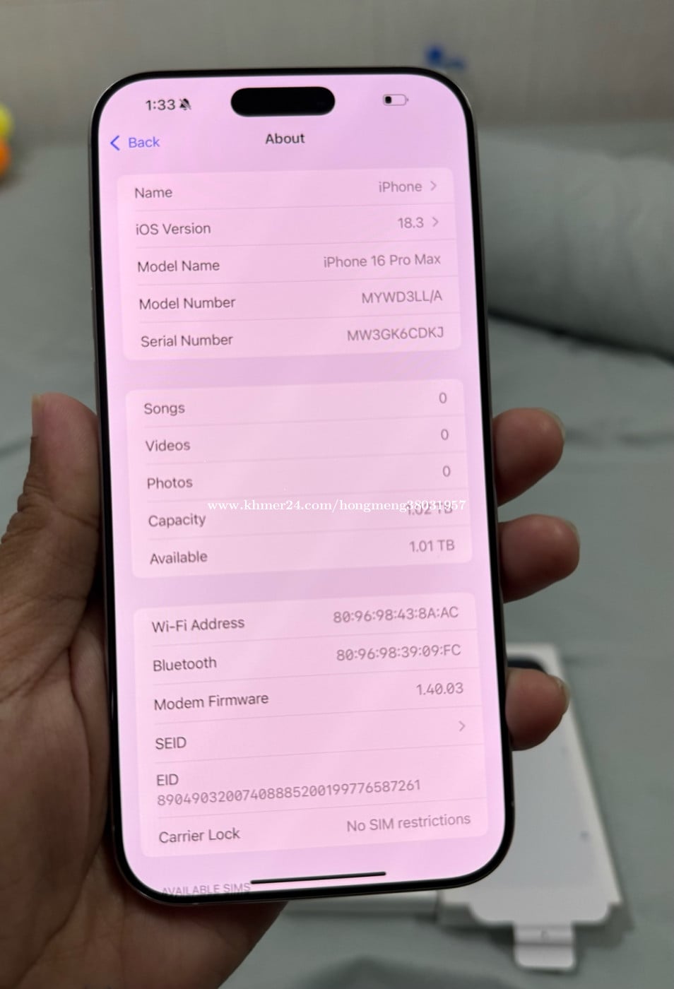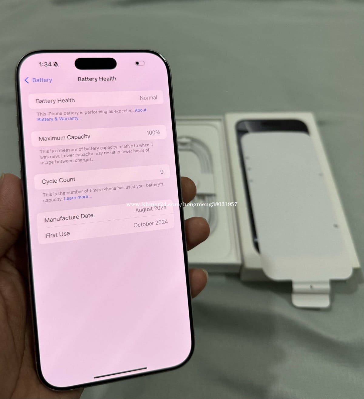 iPhone 16 pro max Esim សាក ថ្ម 9 ដង នៅ ថ្មី 1170$ ថ្មី ណាស់