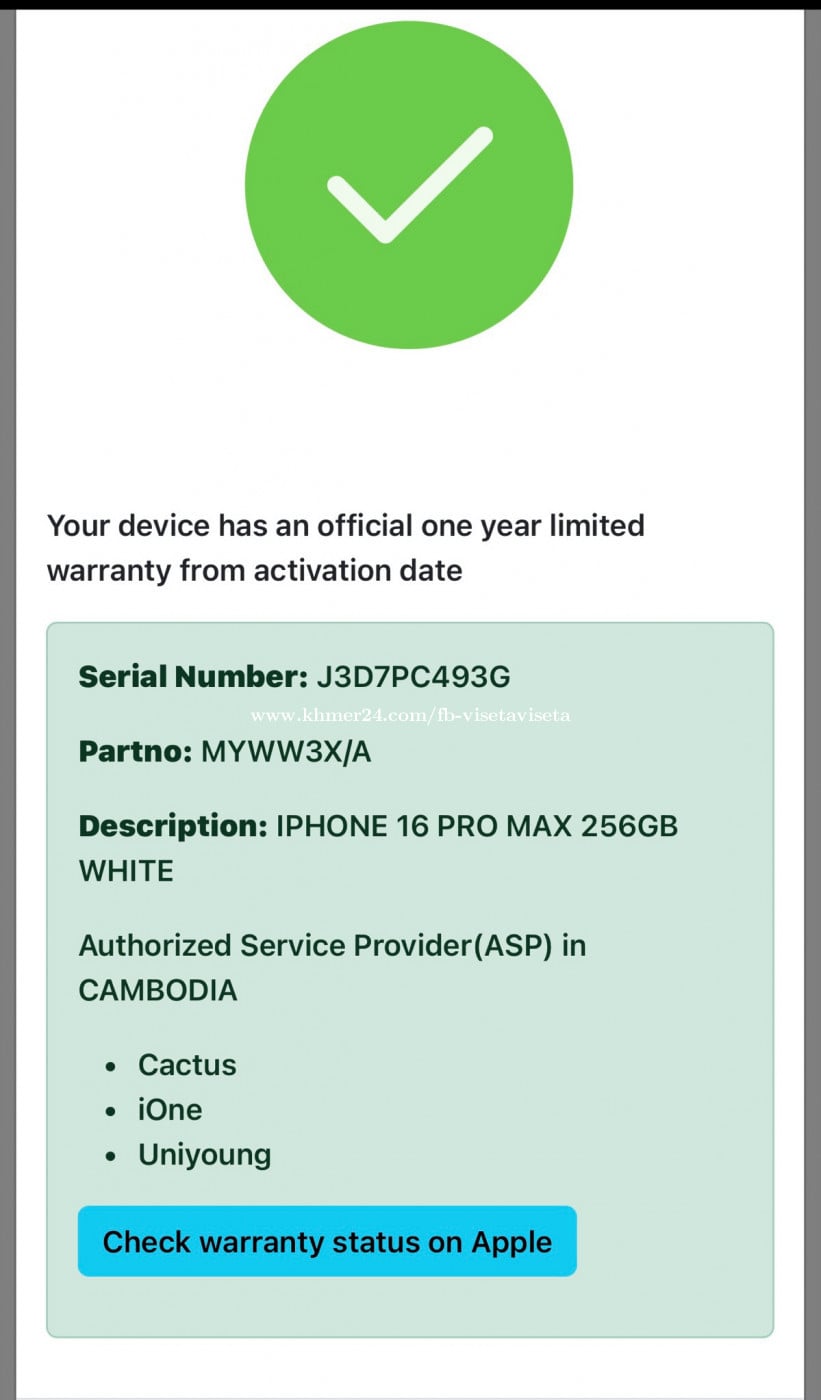 iPhone 16 Pro Max X/A 256 White សានុំហ្សុីនណែននៅធានាពីរក្រុមហ៊ុន មា្ចស់ប្រេីថែណាស់ t.me/MoyTou99