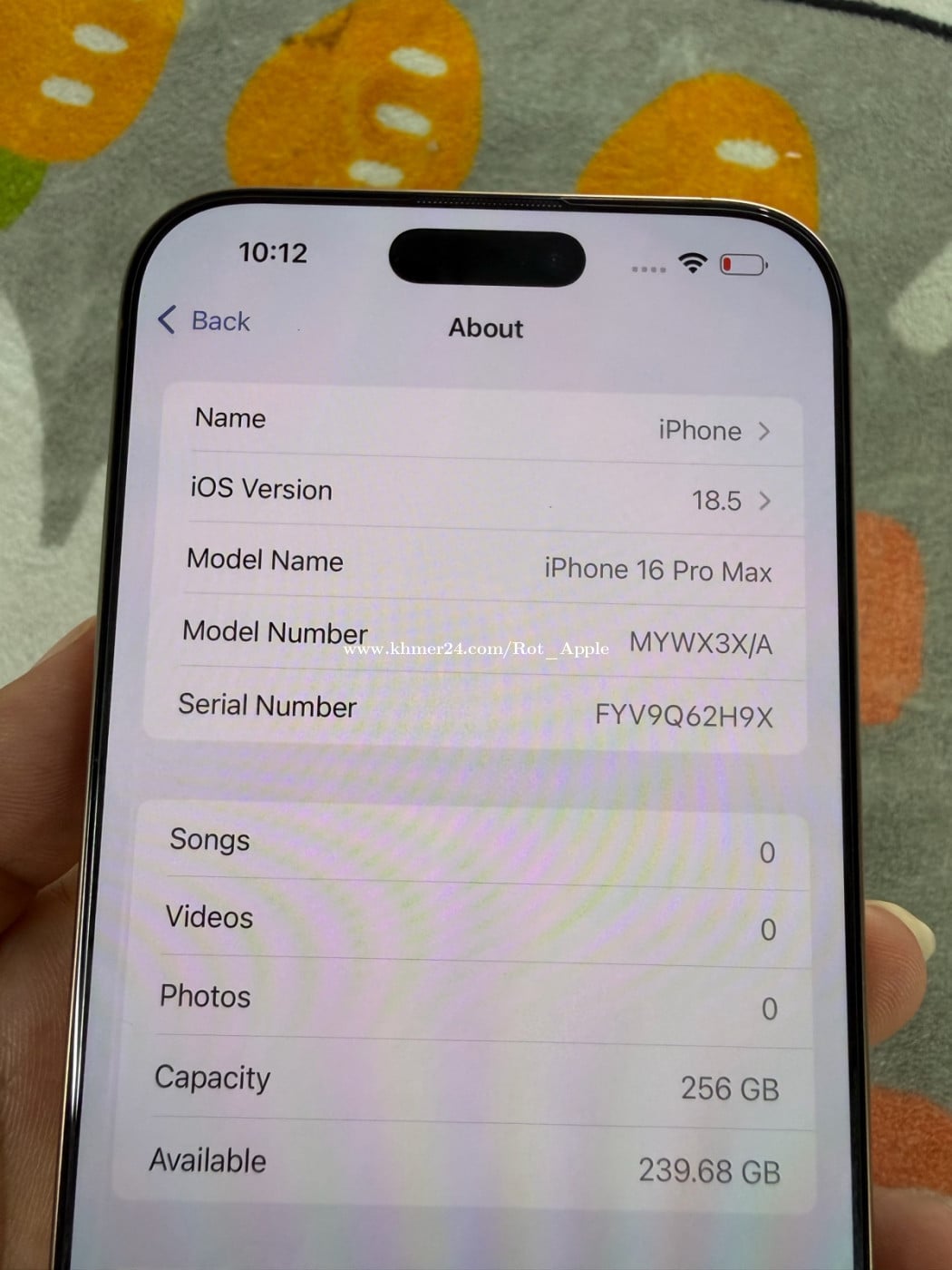 iPhone 16 Promax memory 256G XA battery health 99% ស្អាត ១ជុំ សានុំហ្សីន