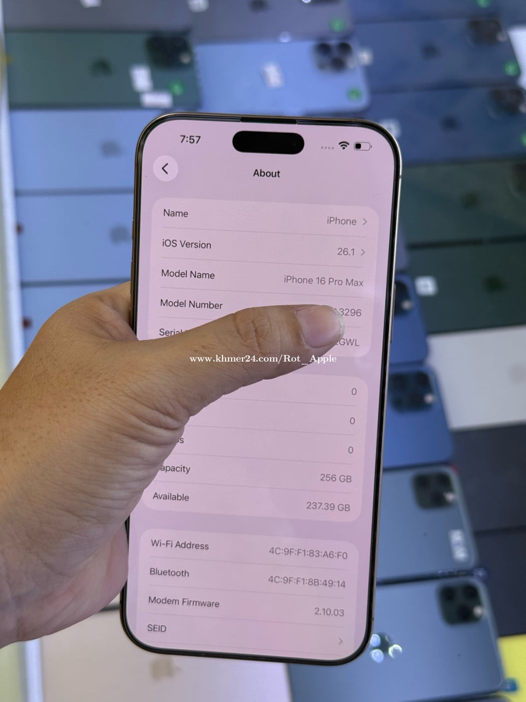 iPhone 16 Promax memory 256G XA battery health 100% ស្អាត 99.9%