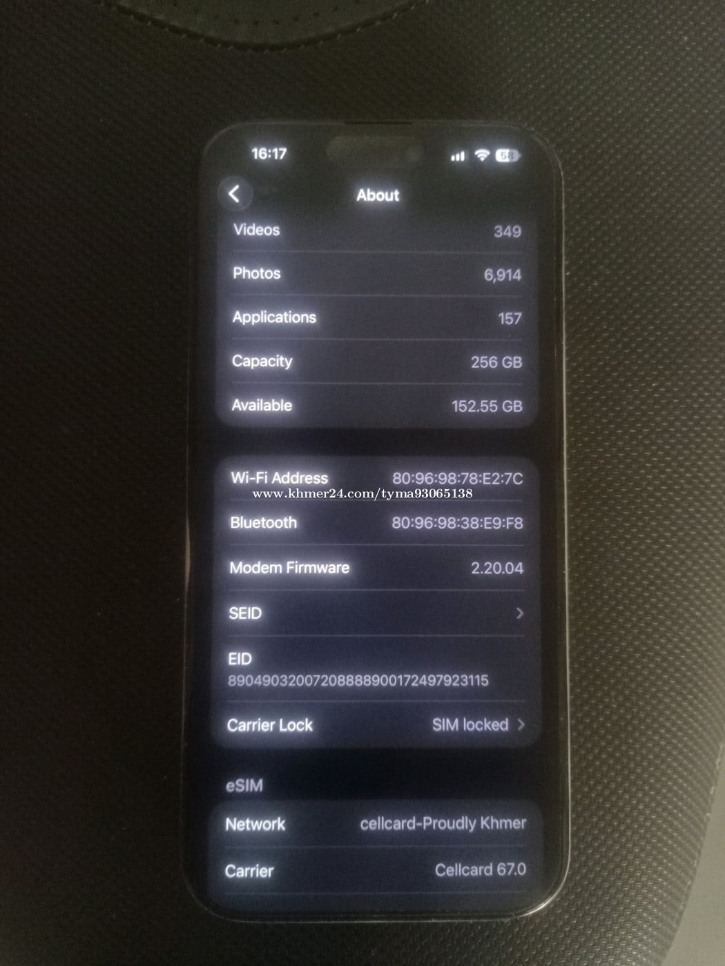 up 17 promax Lock sim ប្រើទ្រនាប់សុីមបាន ស្អាត99% អេក្រង់អត់ដានអត់អុច ថ្ម 94% 256gb