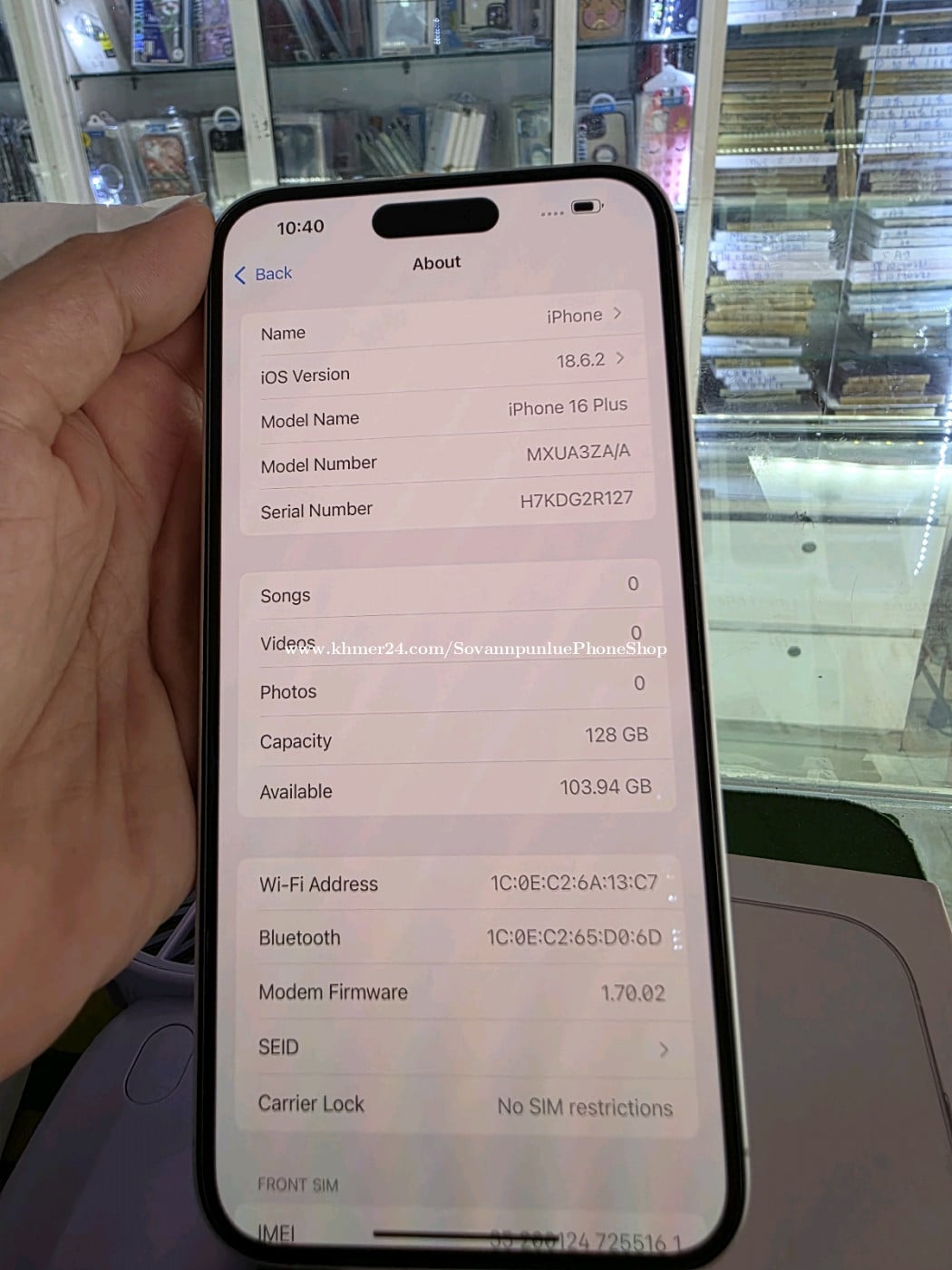 iPhone 16plus 128G ZA sim2 ស្អាតខ្ចីញ៉េញ 99% ថ្ម100% ធានាសុំនុំហ្សីន1set full box យូរៗមានម្តងទេ ទិញអោយទាន់ ហេីយអ្នកណាចាប់អារម្មណ៍អាចរកខ្ញុំបានមាននៅហាងពេជ្រសុវណ្ណពន្លឺនិងហាងសុវណ្ណឧត្តមនៅទល់មុខផ្សារសូរិយា tel:017553xxxClick To Call/081335xxxClick To Call
