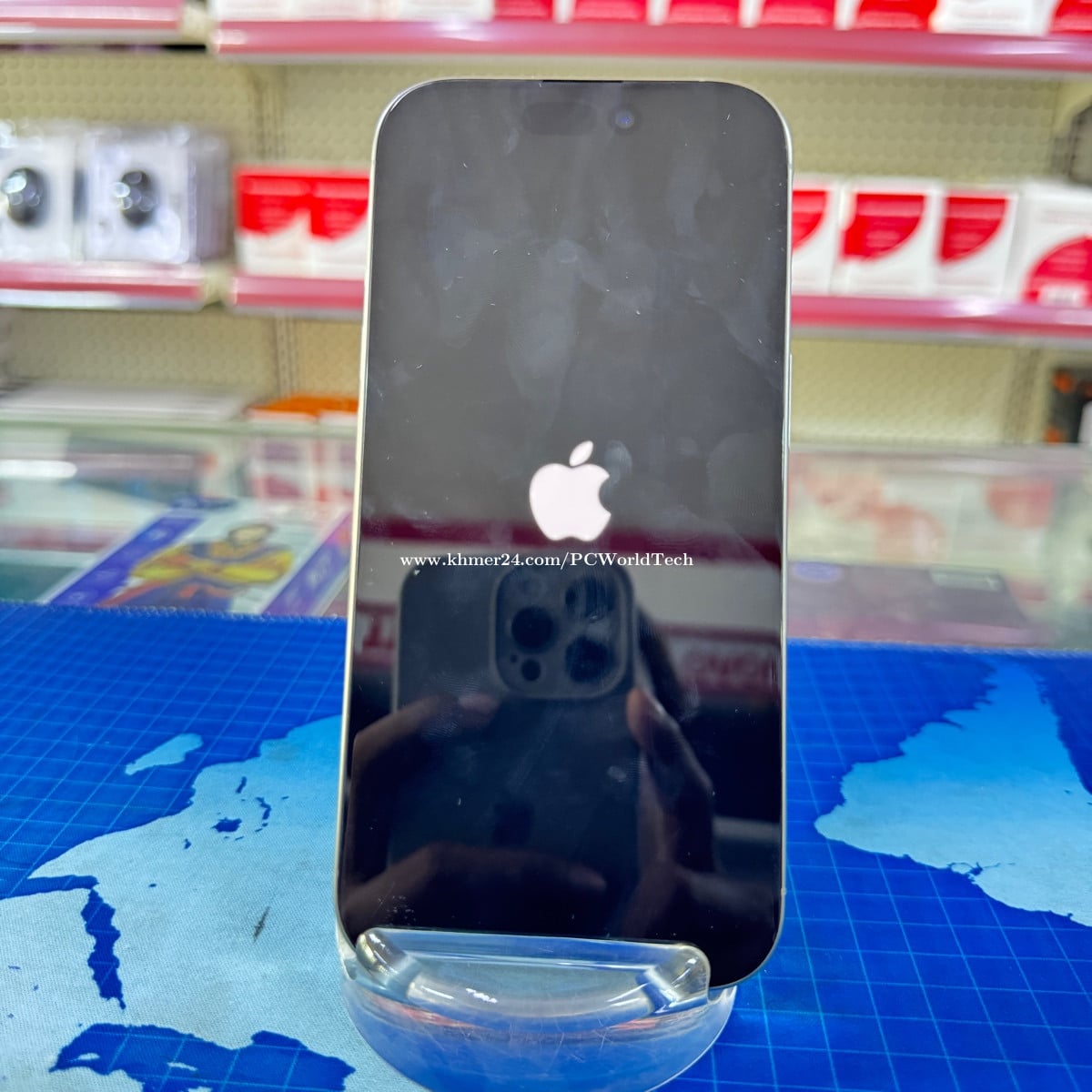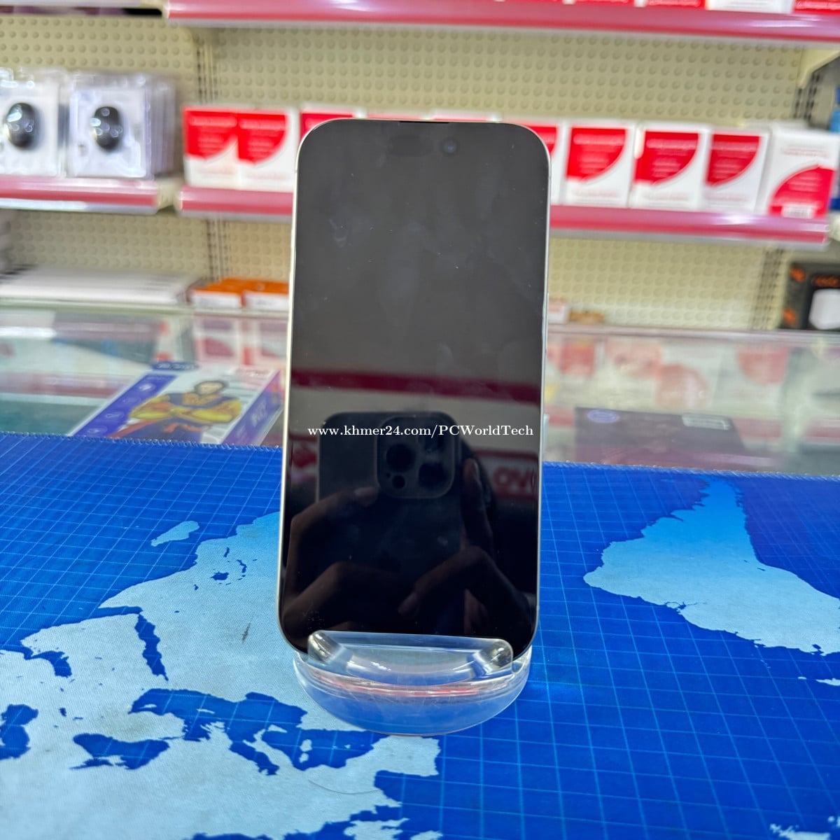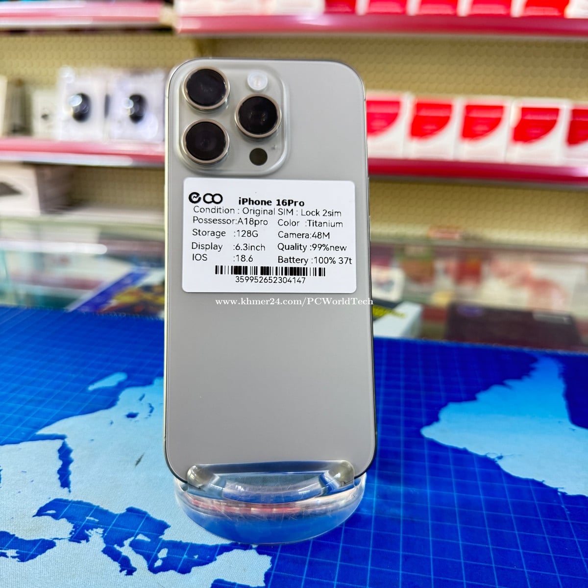 Original Color Titanium Storage 128g Camera 48M Display 6.3inch IOS 18.6 Quality 99% Battery 100% មានដានអេក្រង់ខាងក្រោមបន្តិច