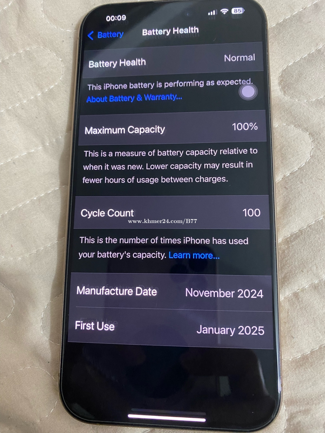 iPhone 16pro max 256G X/A sim2 ស្អាតខ្ចី 99% ថ្ម100%សាកថ្ម100ដងប្រើប្រាស់បានតិច នៅប័ណធានាពីក្រុមហ៊ុន តម្លៃ1050$ ចរចាបាន Telegram:086227xxxClick To Call