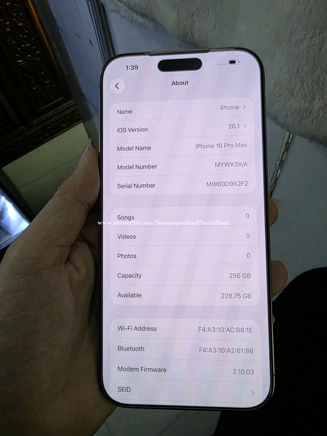 iPhone 16pro max 256G XA sim1+Esim ថ្ម95% ស្អាត98% ស្ទេីរតួតិចដូចក្នុងរូប ក្រៅពីនឹងថ្លឹង ធានាហ្សីនសុំនុំបេីមិនពិតលុយវិញ internetលឿន លេងអត់ក្តៅ បងប្អូនណាចាប់អារម្មណ៍មាននៅហាងពេជ្រសុវណ្ណពន្លឺ នឹងហាងសុវណ្ណឧត្តម tel: 081335xxxClick To Call/ 017553xxxClick To Call