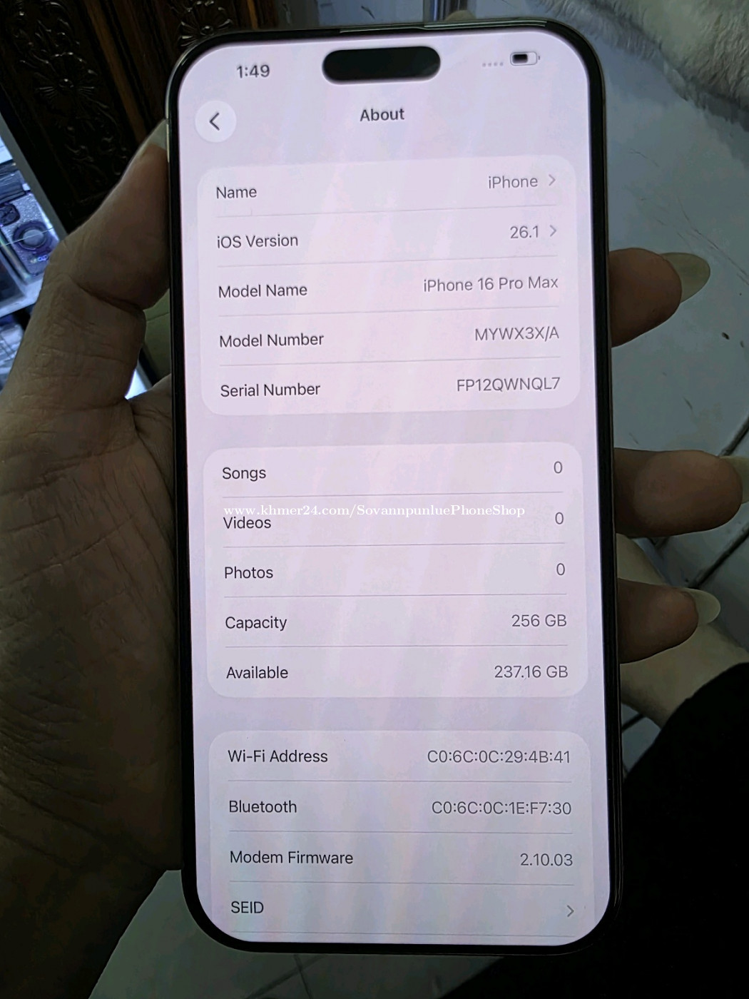 iPhone 16pro max 256G XA sim1+Esim ថ្ម91% ស្អាត99% ធានាហ្សីនសុំនុំបេីមិនពិតសងលុយវិញ internetលឿន លេងអត់ក្តៅ បងប្អូនណាចាប់អារម្មណ៍មាននៅហាងពេជ្រសុវណ្ណពន្លឺ នឹងហាងសុវណ្ណឧត្តម tel: 081335xxxClick To Call/ 017553xxxClick To Call