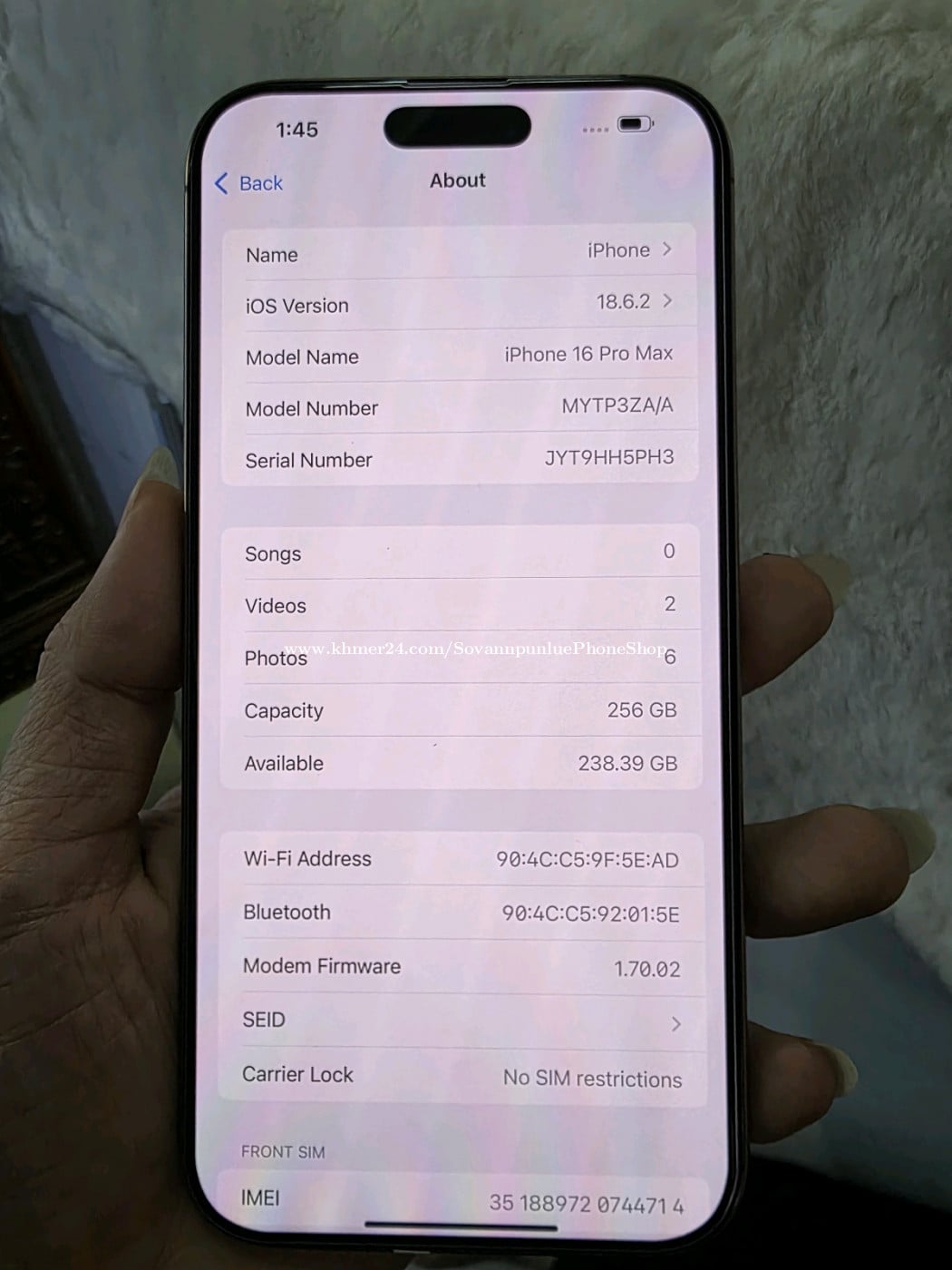 iPhone 16pro max 256G ZA sim2 ថ្ម91% ស្អាត99% ធានាហ្សីនសុំនុំបេីមិនពិតលុយវិញ internetលឿន លេងអត់ក្តៅ បងប្អូនណាចាប់អារម្មណ៍មាននៅហាងពេជ្រសុវណ្ណពន្លឺ នឹងហាងសុវណ្ណឧត្តម tel: 081335xxxClick To Call/ 017553xxxClick To Call