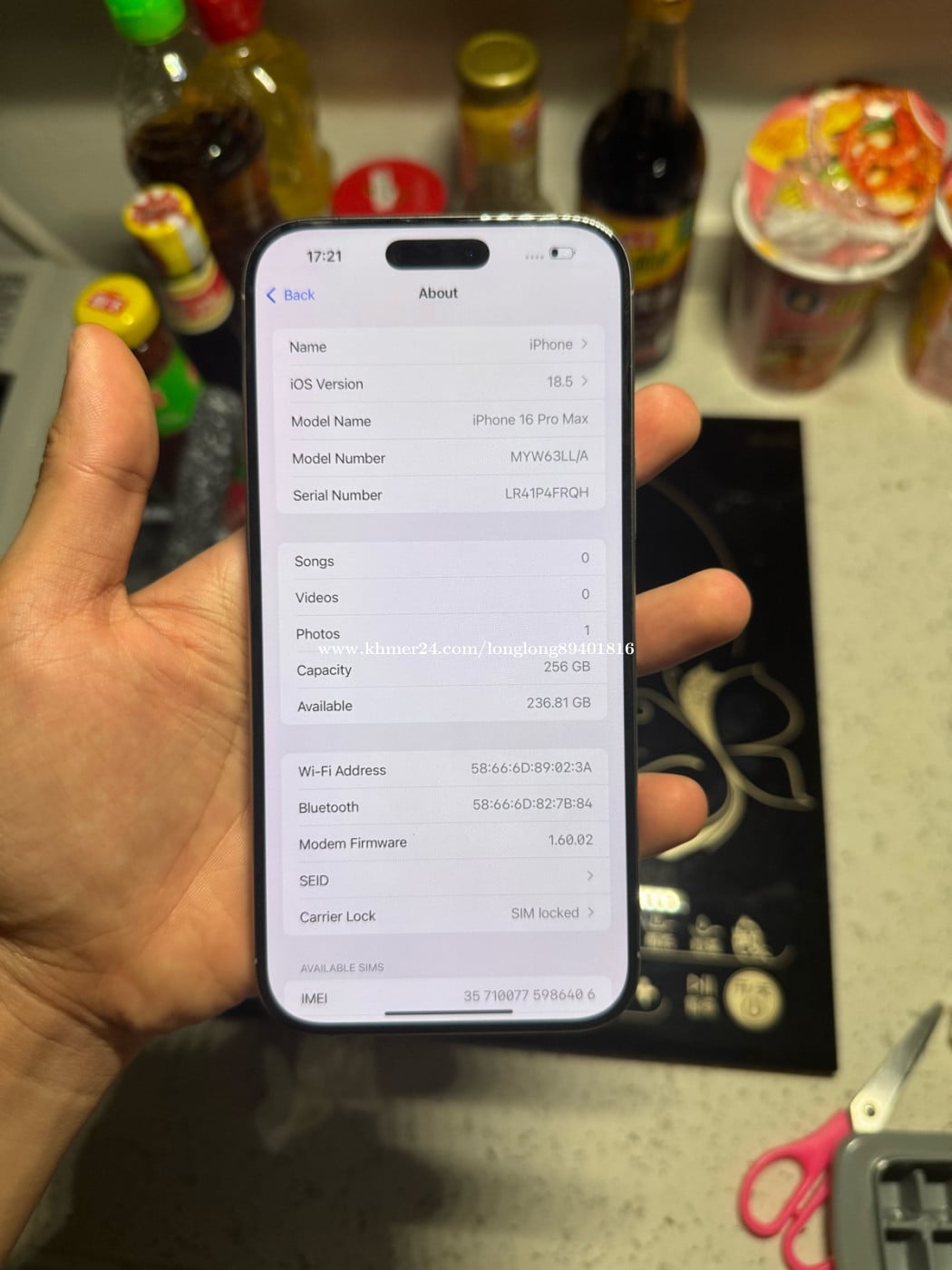 iPhone 16 Pro Max 256GB ពណ៌ប្រាក់ ម៉ាស៊ីនសម្បូរបែប 99.99% ស្ទើរថ្មី ថ្ម 95% អាចប្រើស៊ីម 2 មុខងារទាំងអស់ធម្មតា គ្រឿងគ្រប់យ៉ាងដើម មានការធានា 1 សប្តាហ៍ Telegram 0712416xxxClick To Call iPhone 16 Pro Max 256GB Silver Like-new condition (99.99% new) Battery health 95% Supports 2 SIM All functions work perfectly All parts are original Comes with 1-week warranty