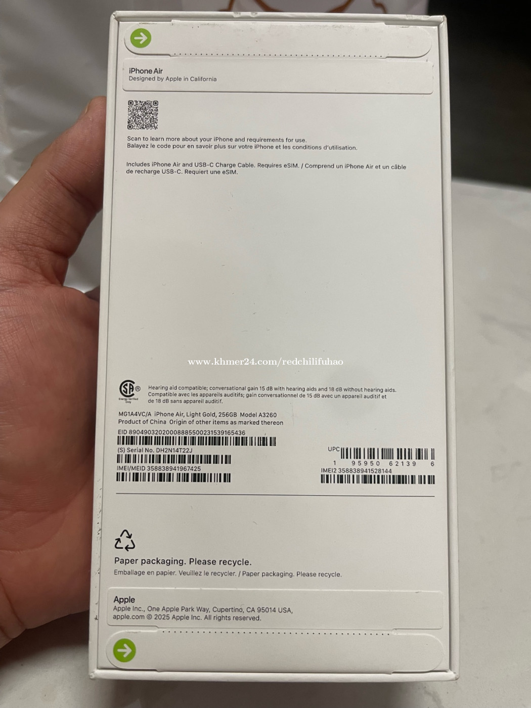❤️iPhone 17 Air CA Memory 256G Gold ថ្មីសុទ្ធ No active លក់ក្នុងតម្លៃ ពិសេស 📲 010622xxxClick To Call (Telegram) ទីតាំង កោះពេជ្រ