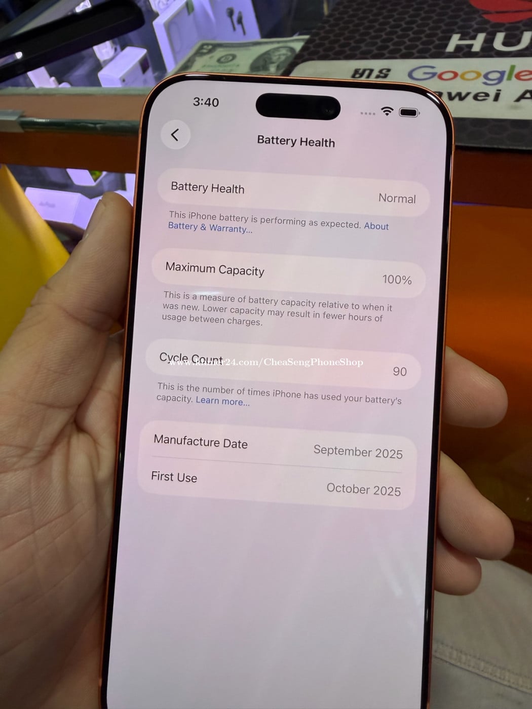 iPhone 17 pro max Model ZA Sim 1 + ESIM Battery health 100% Condition Body and Screen 99% Note : Display Camera Warranty 1 month