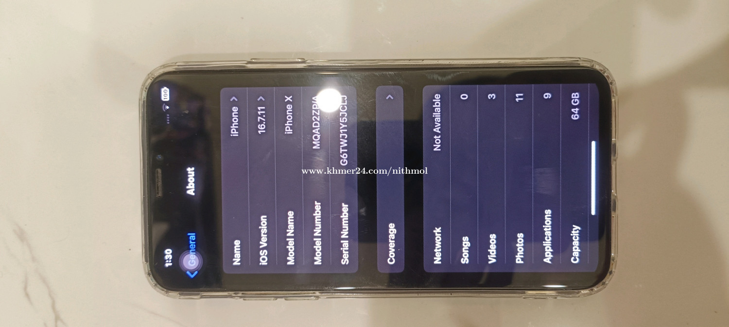 Iphone x 64G នៅស្អាត ប្រើប្រាស់បាន មាន Face Scan
