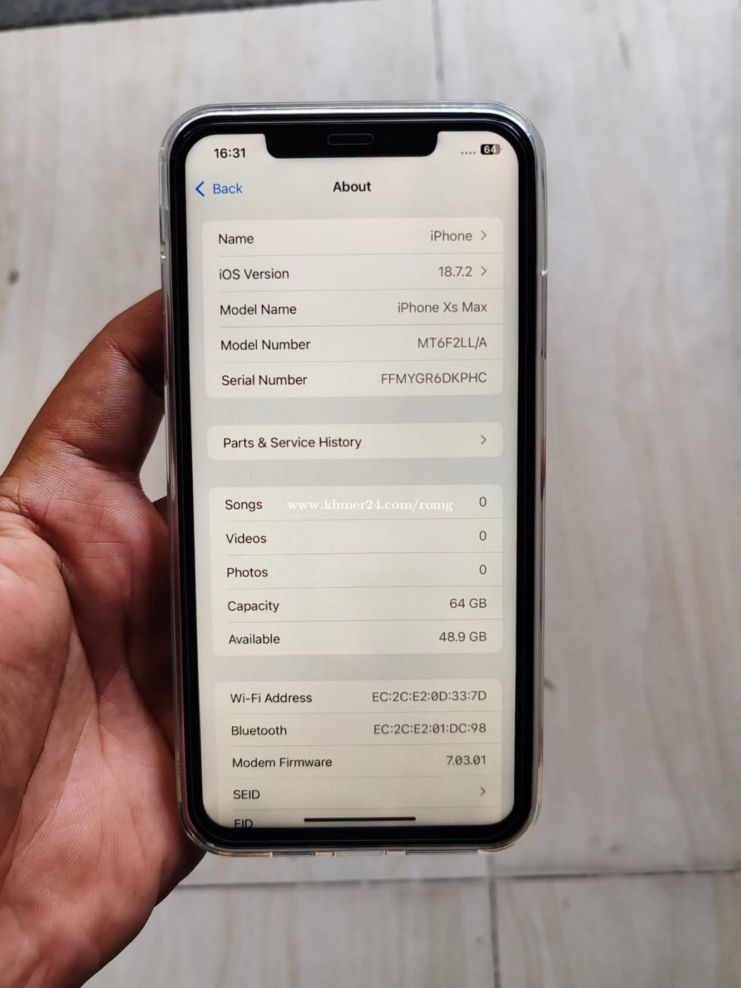 Iphone Xs max 64gb មានស្កេន អេក្រង់ថ្មី ថ្មថ្មី100% 1**$ ភ្នំពេញ 016601xxxClick To Call