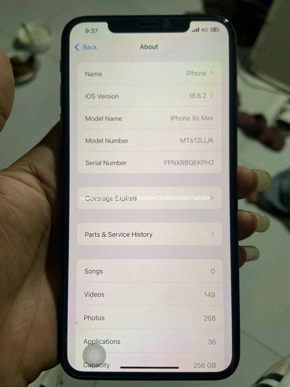 iPhone XS Max 256G/LLA/សាណុំសុីនមានសស្គេន/ម៉ាសុីនអត់ដែលជួរជុល/បញ្ចាក់អេក្រង់ថ្មីថ្ម76%ស្ទើរខ្នងក្រោយដូចក្នុងរូបដាក់លក់តម្លៃ150$