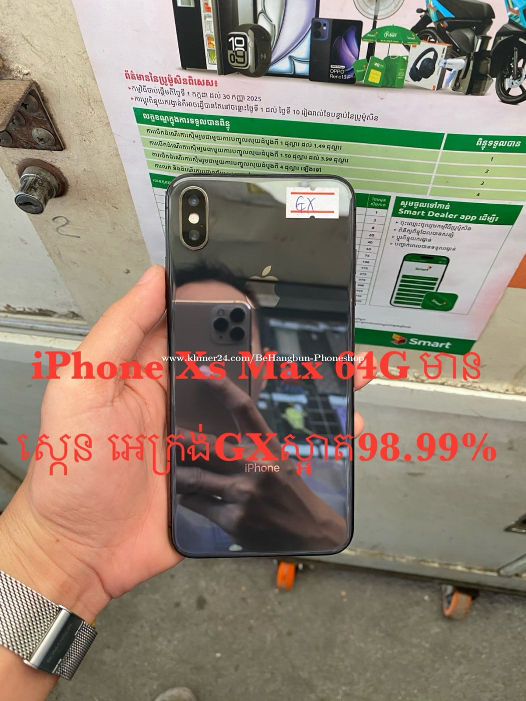 iPhone Xs Max 64G មួយទឹកស្អាត98.99% មានស្កេន អេក្រង់GX ធានាម៉ាសុីនហ្សុីន នឹងធានាការប្រេីប្រាស់រយៈពេល15ថ្ងៃ មានឆ្នាំងសាក មានបង់រំលស់ជាមួយហាង មានសេវ៉ាដឹកជញ្ជូន25ខេត្ត-ក្រុង ទីតាំង : ជិតស្តុបលូប្រាំ ស្ទឹងមានជ័យ Tel : 099777xxxClick To Call / 081336xxxClick To Call / 0972312xxxClick To Call Telegram : https://t.me/BeHangbun