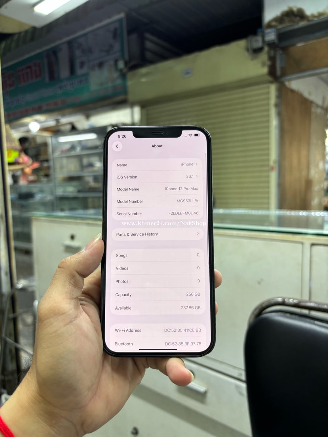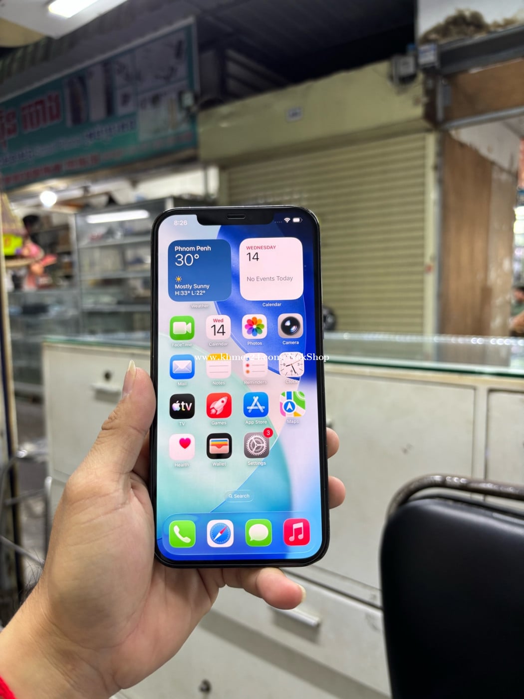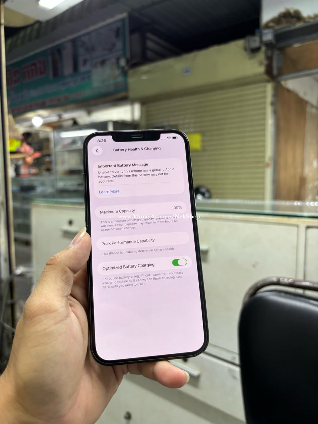 Iphone12pro max 256G LL sim2 ESIM ម៉ាសុីនស្រុីនមានស្គេន អេក្រង់យូរៗបែកពណ៍ម្ដង