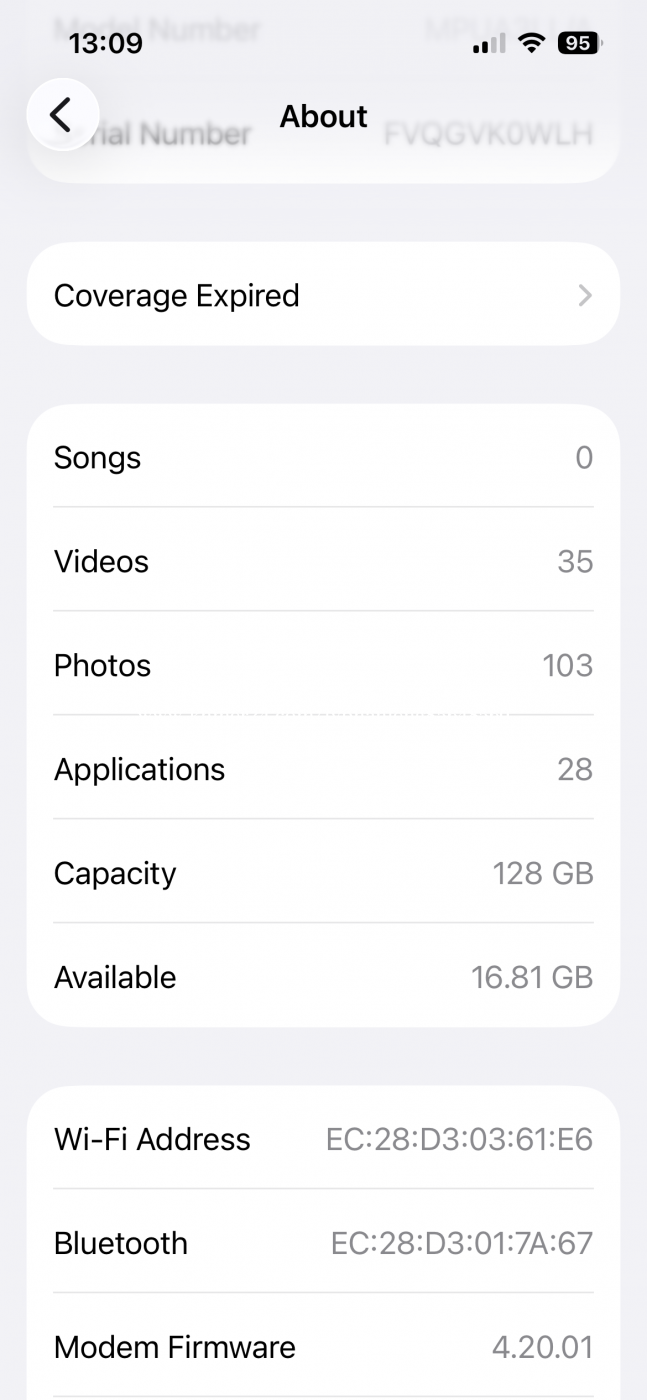 អត់ជាប់ICloud ប្រើ e-sim Memory 128GB ពណ៍ Midnight Blue