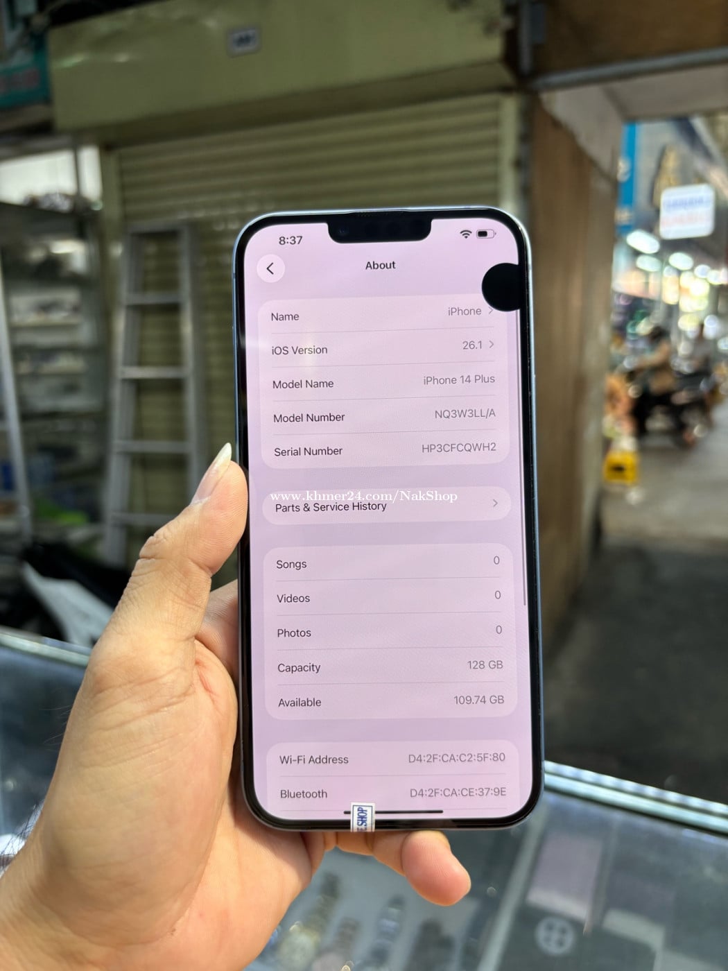 Iphone14plus 128G LL/A ប្រើESIM ជាំអេក្រង់តិច ដូររូប មានស្គេន
