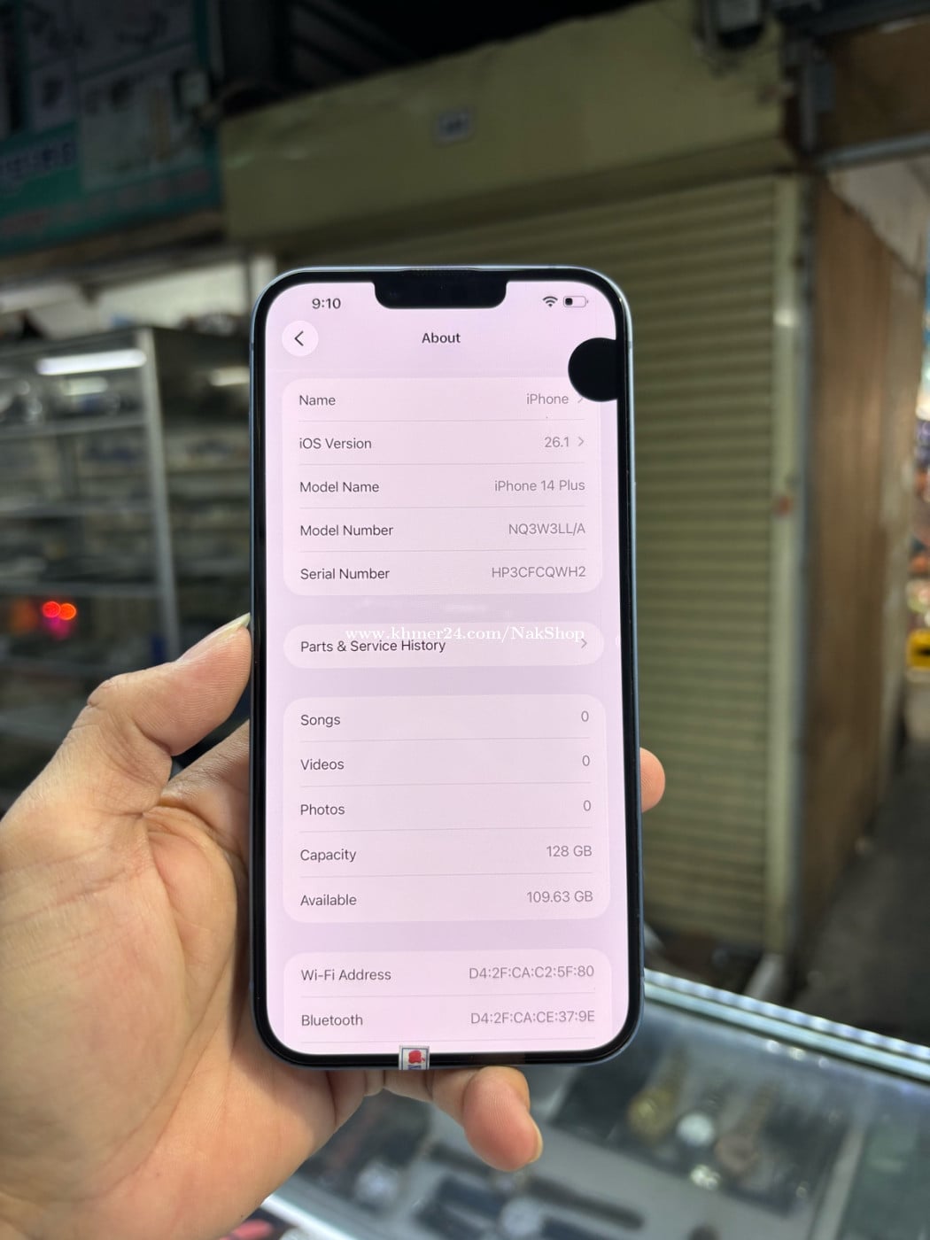 Iphone14plus LL/A 128G ប្រើeSIM ម៉ាសុីនស្រុីន ជាំអេក្រង់ ថ្ម98%