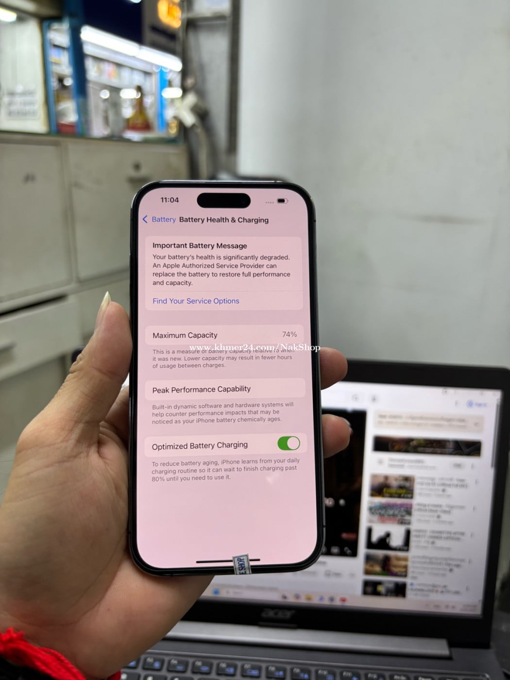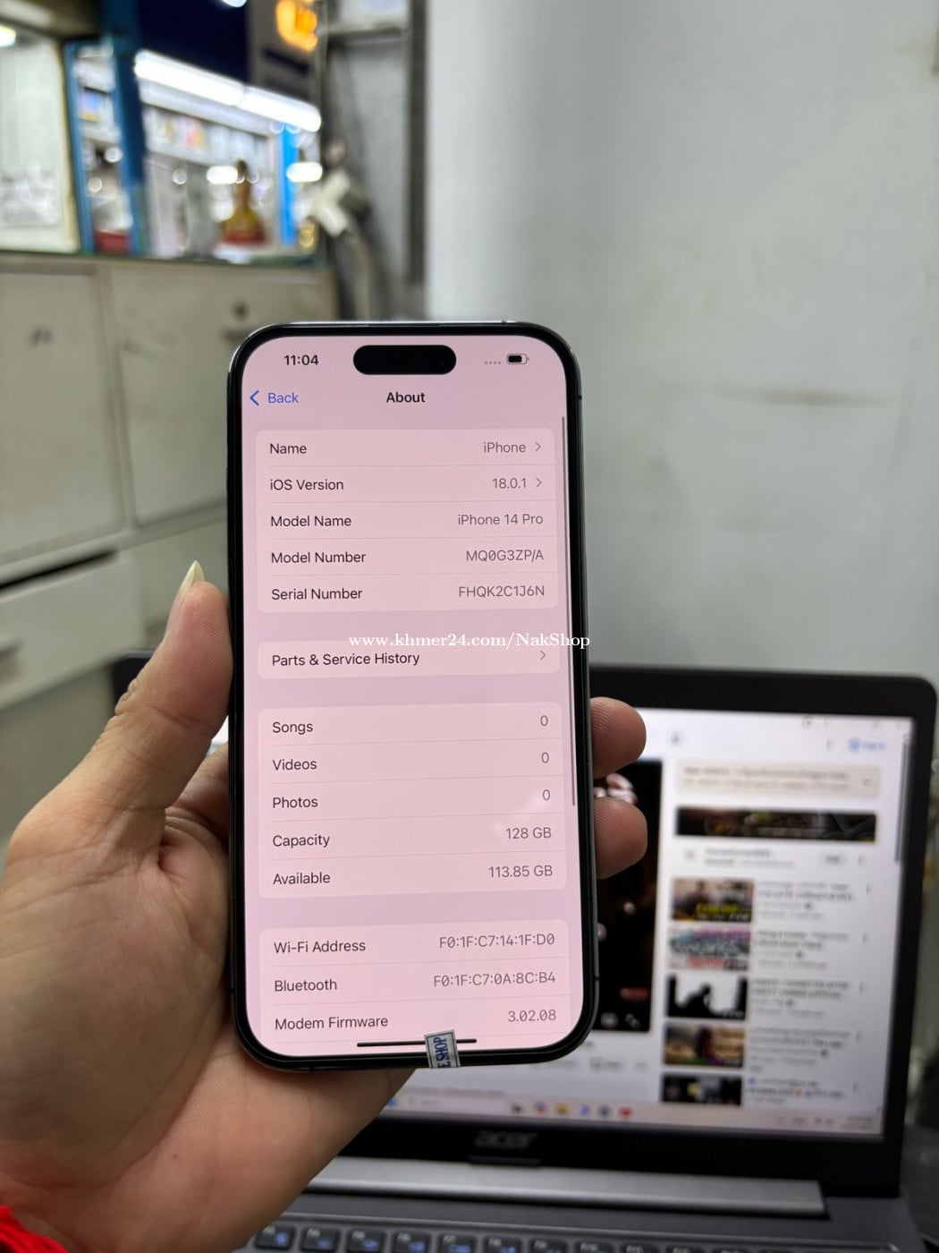 Iphone14Pro 128G ZP sim2 ESIM ម៉ាសុីនសានុំណែន ថ្ម74%ស្រុីន