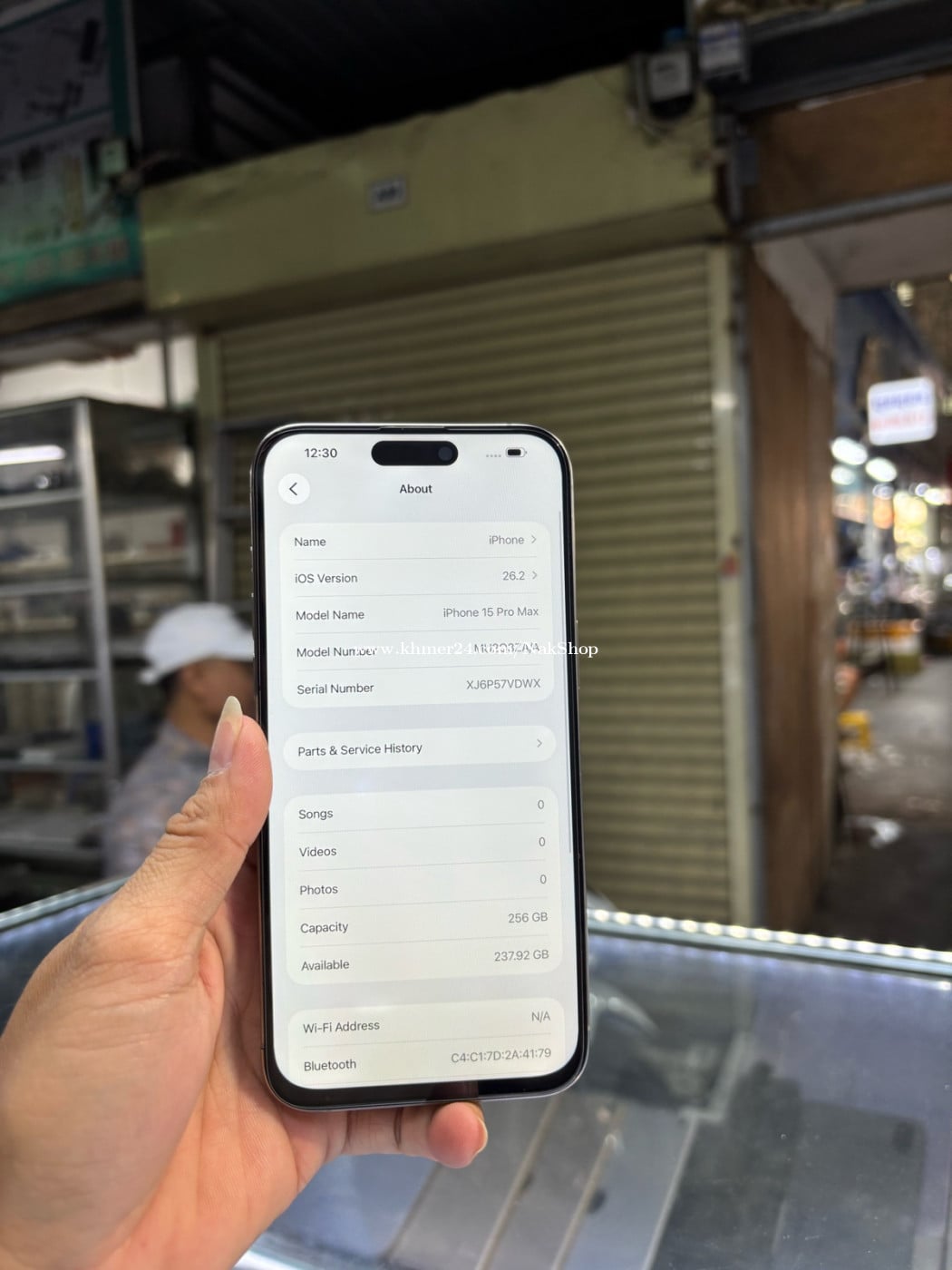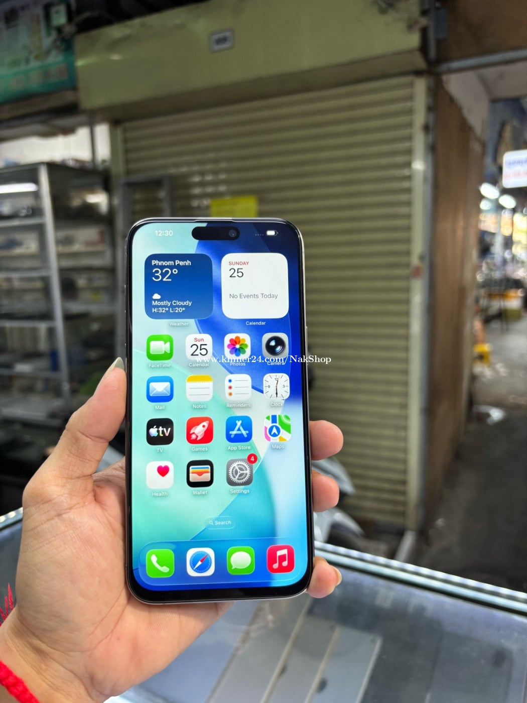 Iphone15pro max 256G ZA sim2 សាកថ្ម52ដង ដូរអេក្រង់ថ្មី ថ្ម100%