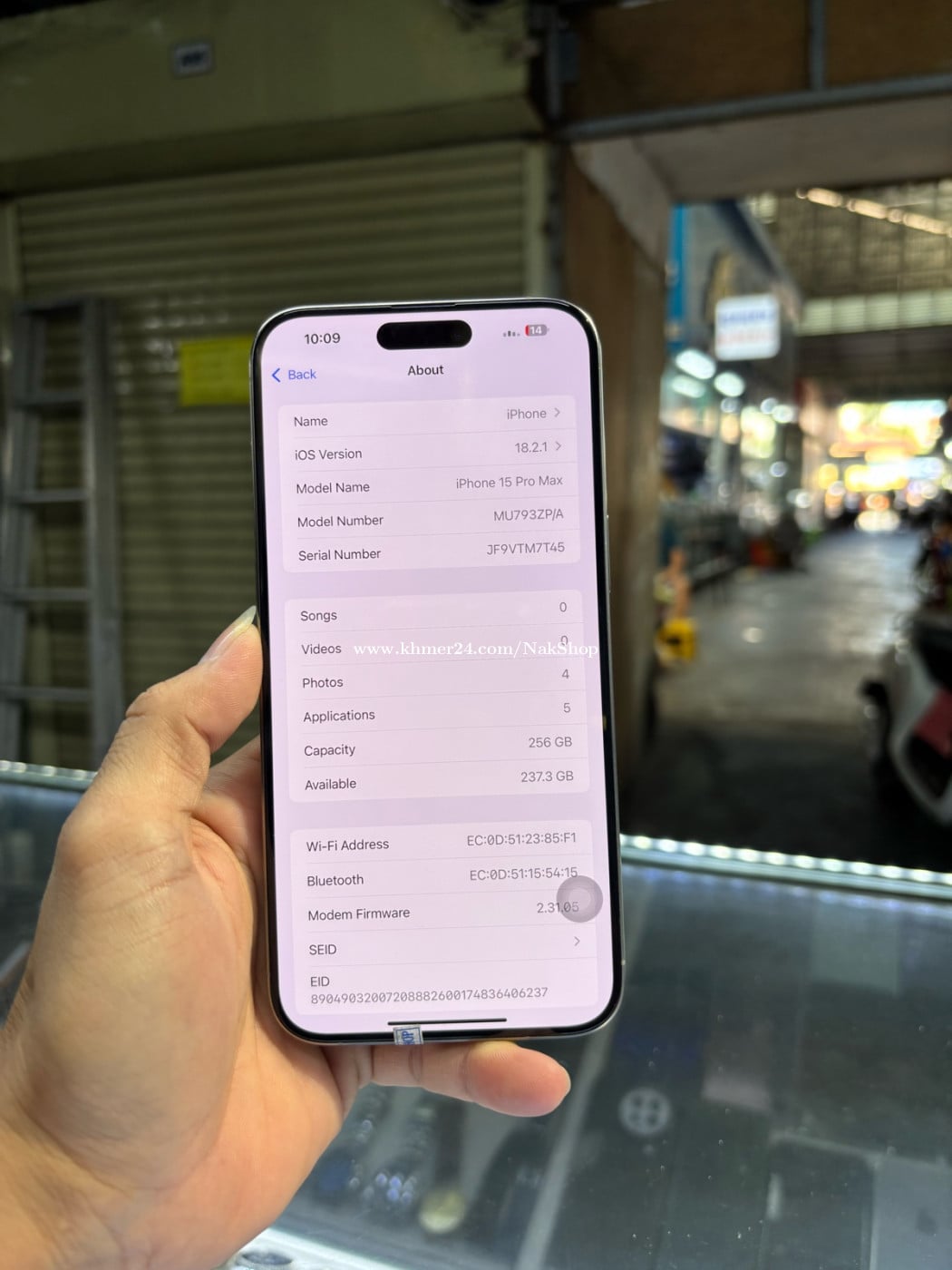 Iphone15Pro max 256G ZP ថ្ម88% ម៉ាសុីនbypass WiFi សានុំស្រុីន100%