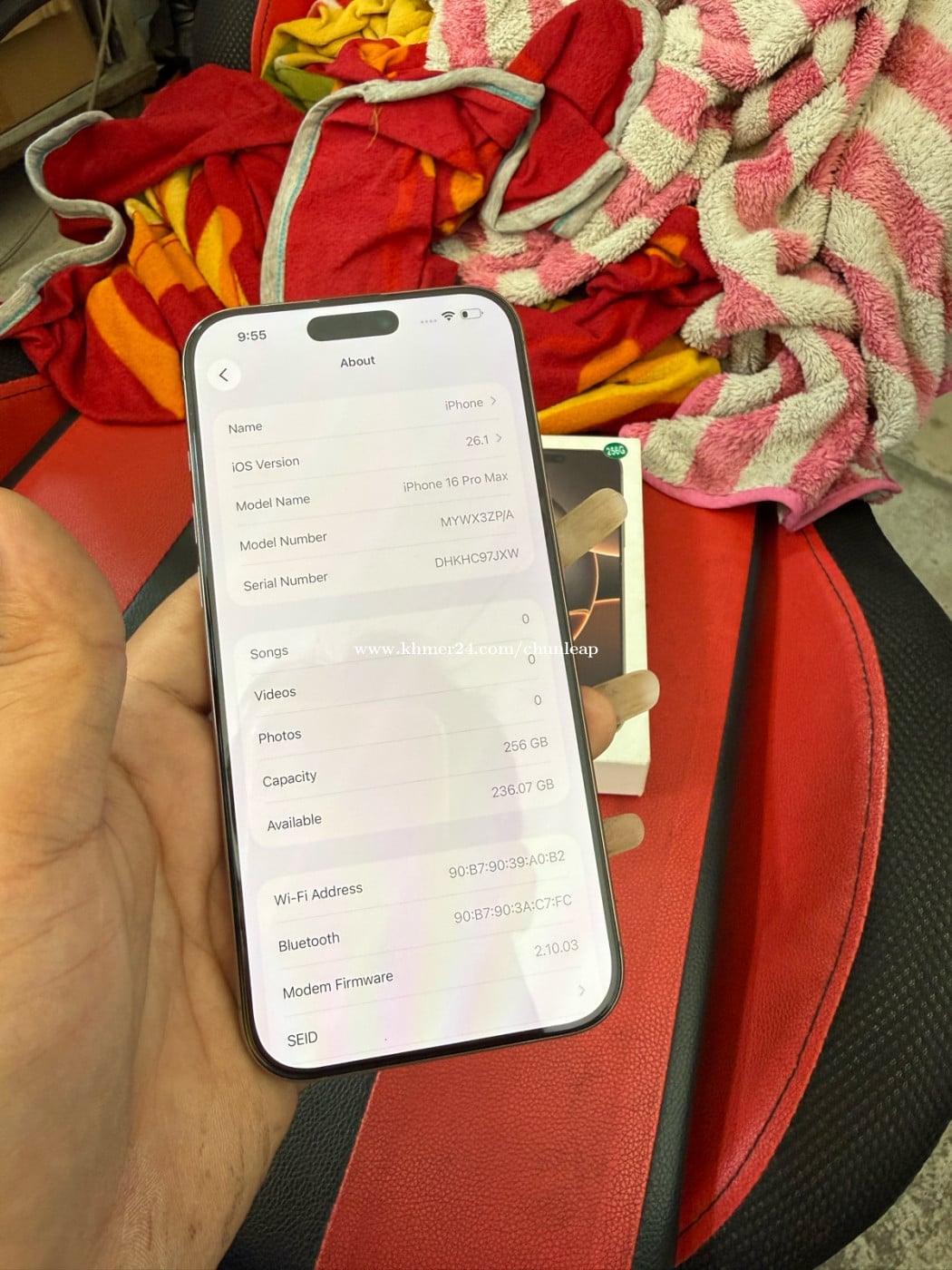 Iphone16promaxស្អាត99% តួស្អាតថ្ម90%ជាប្រភេទអីវ៉ាន់Zp 256g