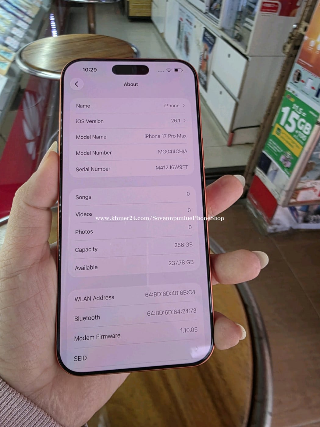 Iphone17 pro max 256G ch sim2 សាកថ្ម30ដងទេ ថ្ម100% ស្អាត99% ធានាហ្សីនសុំនុំ ថតស្អាត internet លេងអត់ក្តៅ បងប្អូនណាចាប់អារម្មណ៍មាននៅហាងពេជ្រសុវណ្ណពន្លឺ នឹងហាងសុវណ្ណឧត្តម tel: 081335xxxClick To Call/ 017553xxxClick To Call
