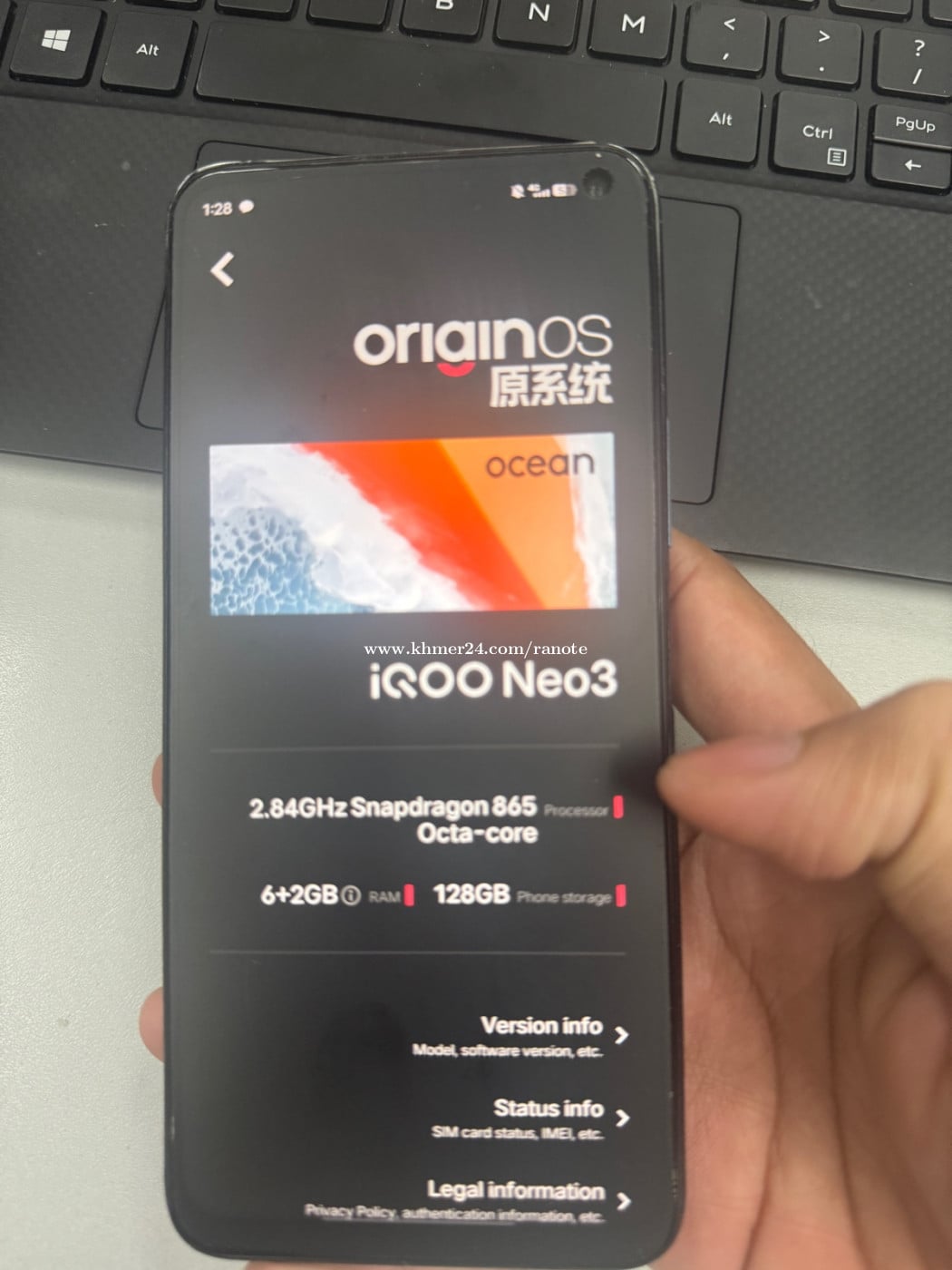Iqoo neo3 5G gaming phone សន្នំសុីនប្រើធម្មតាទាំងអស់ បែកតែខ្នង Display: 6.57 inches IPS LCD 144Hz HDR10 Ram 6 + 2 Storage 128G Cpu: snapdragon 865 5G
