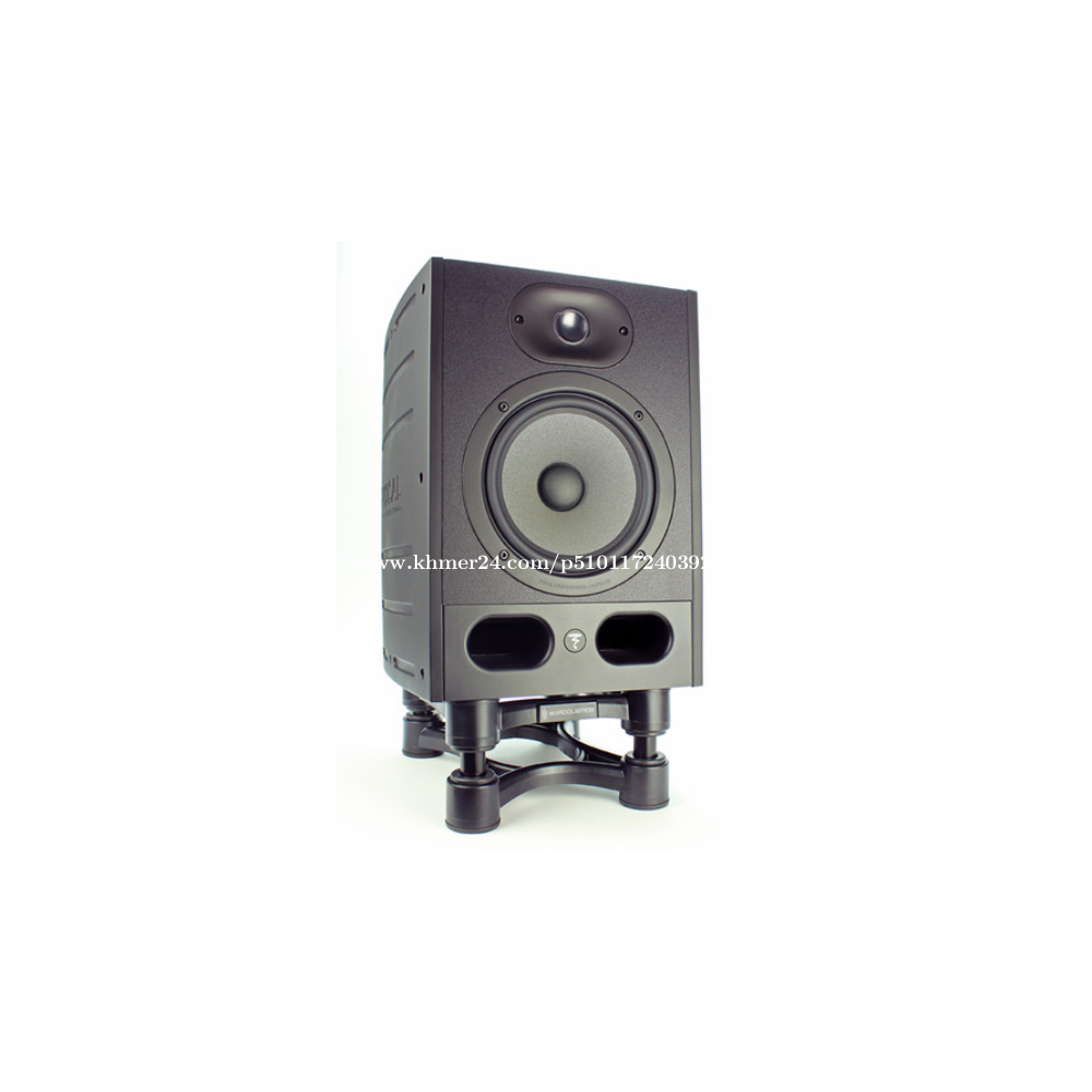 An updated version of the popular ISO-L8R stands, the IsoAcoustics ISO-200 is a pair of acoustic isolation stands offering improved tonal and spatial accuracy for your speakers. Measuring 7.8 x 10.0 inches with a height range of 3.8 to 8.5 inches, the ISO-200 isolation stands are designed to hold large studio monitors weighing up to 75 pounds. By preventing the transfer of speaker cabinet energy to surrounding surfaces, the ISO-200 stands isolate your speakers and reduce smearing. They can be used in broadcast video production houses and recording studios to allow the speaker monitors to perform in free space and achieve their full sonic potential.