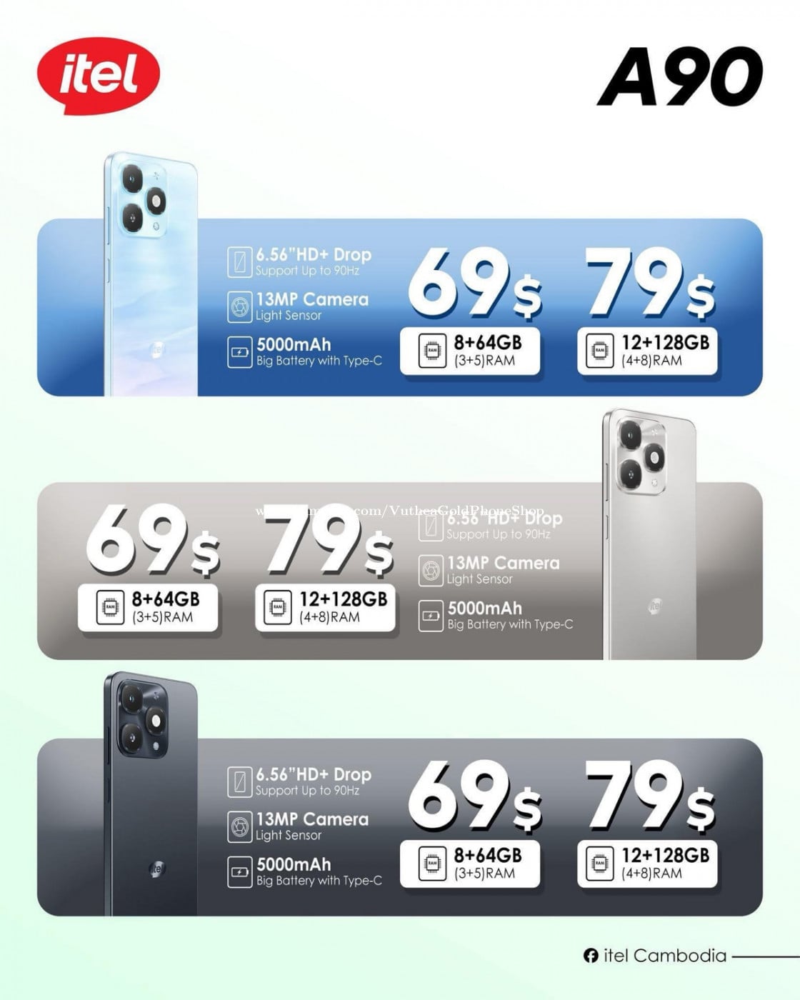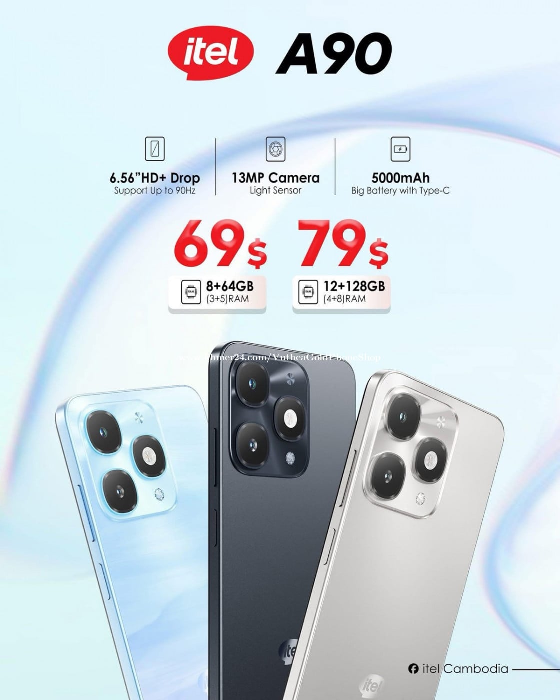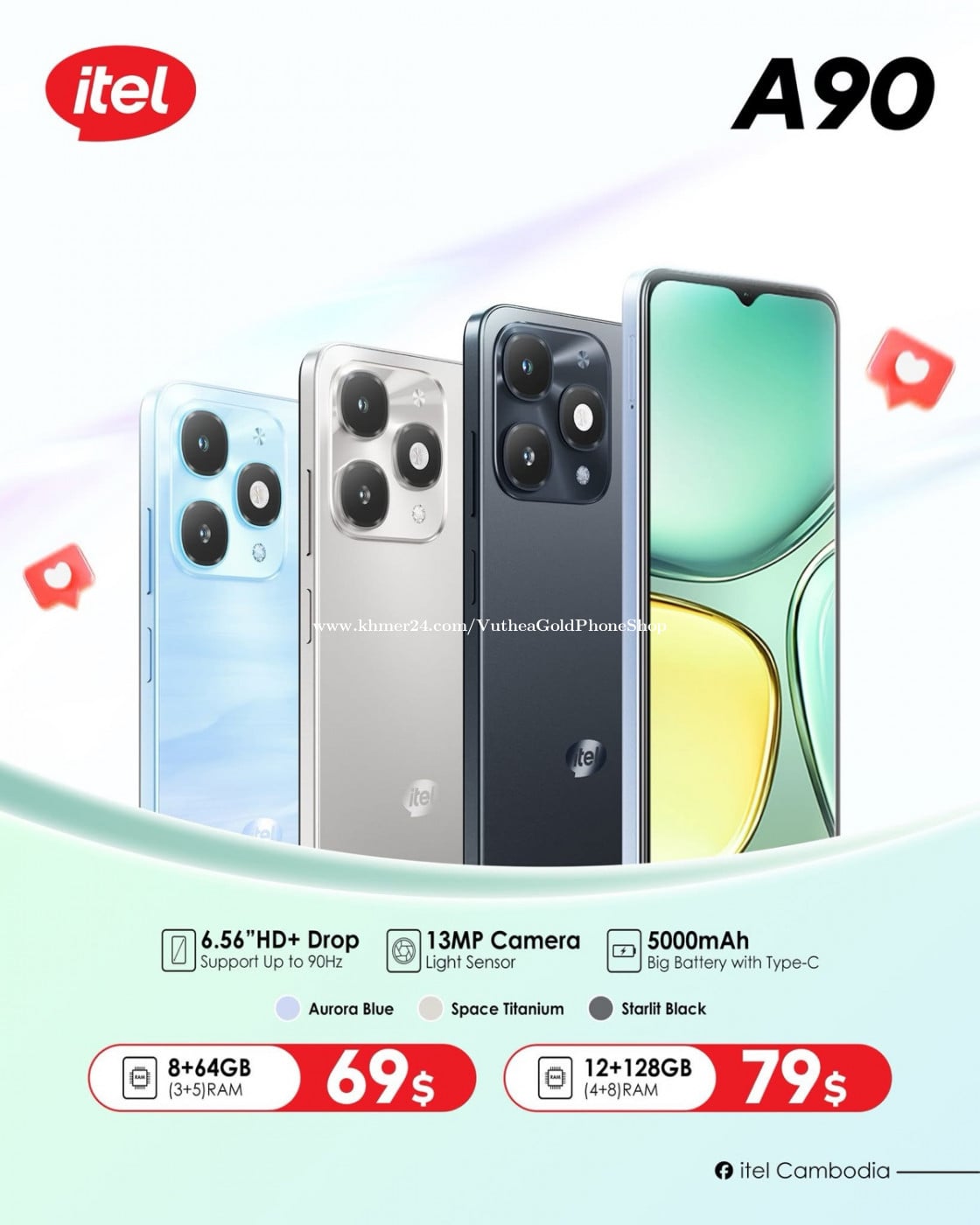 itel A90 ថ្មីប្រអប់តម្លៃធូរថ្លៃ ថែមកាដូមួយឈុត