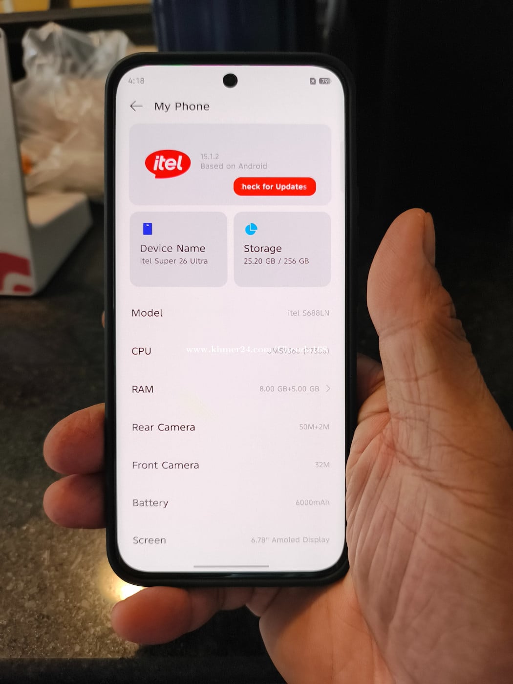 លក់itel S26Ultra Sim2 Company Ram8G+12G Room256G អេក្រង់កោងAmoled144Hz ថ្ម6000mah Full set inbox ស្អាតដូចថ្មីលក់:155$ Please contact:010735xxxClick To Call