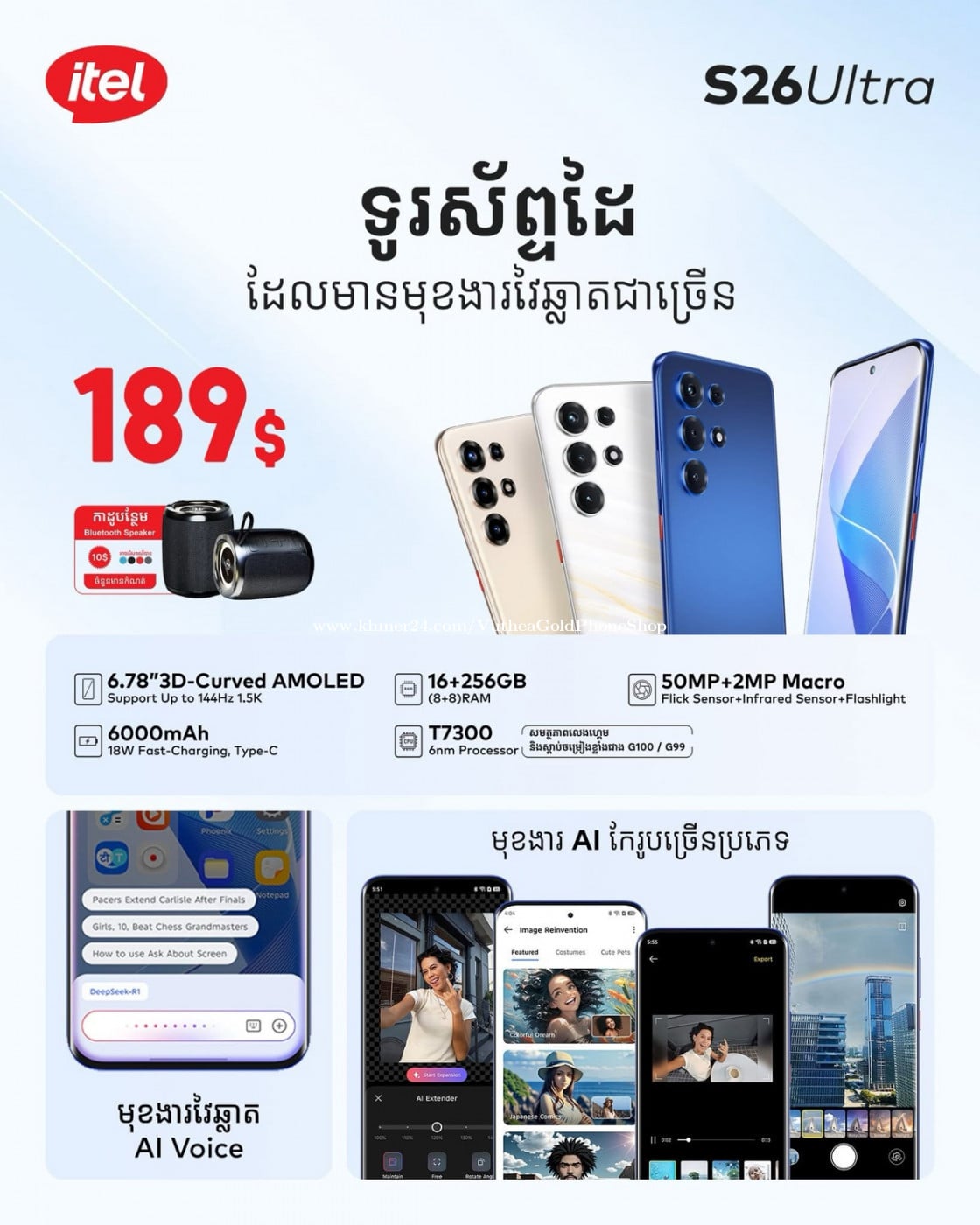 Itel Super 26 Ultra (Ram: 8GB / Storage: 256GB) New Box តម្លៃ 189$ ប្រើអ៉េមណាស់បងៗ ថ្មីធានា១ឆ្នាំ +ថែមកាដូ១ឈុតធំ Inbox Now 📥