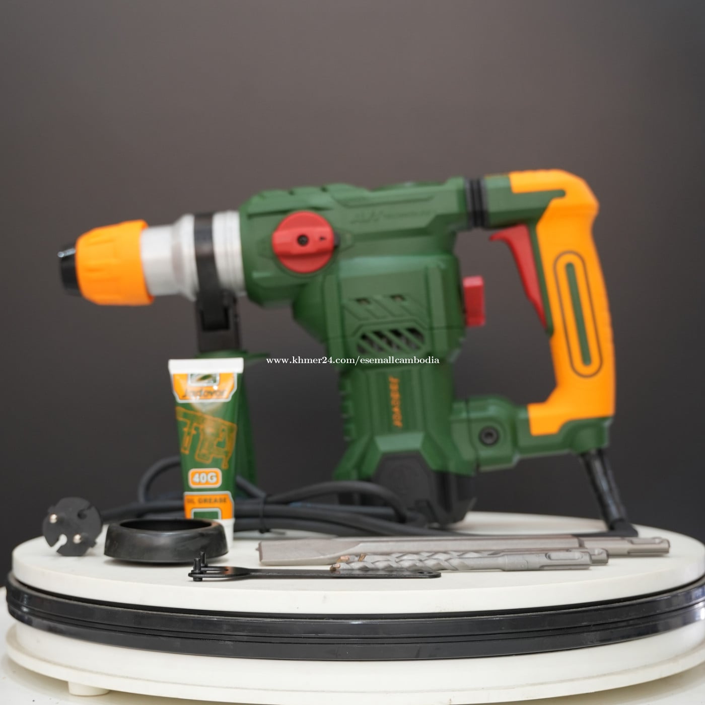 Jadever ម៉ាស៊ីនខួងបុក (Rotary Hammer Drill) (JDRH2D32) ម៉ាក៖ JADEVER ប្រភេទ៖ ម៉ាស៊ីនខួងបុក / Rotary Hammer Drill សភាព៖ ថ្មី 100% មានប្រអប់ដើម ពណ៌នាផលិតផល ម៉ាស៊ីនខួងបុក JADEVER ជាម៉ាស៊ីនខួងថាមពលខ្លាំង សាកសមសម្រាប់ការងារខួង និងខួងបុកលើ បេតុង ឥដ្ឋ ដែក និងឈើ។ រចនាឡើងឱ្យរឹងមាំ កាន់ងាយ និងមានសុវត្ថិភាពក្នុងការប្រើប្រាស់។ ដៃកាន់បន្ថែមជួយទប់ស្ទឹង បង្កើនការគ្រប់គ្រងពេលធ្វើការ និងកាត់បន្ថយការញ័រ។ លក្ខណៈពិសេស មុខងារខួង និងខួងបុក (Rotary + Hammer) ដៃកាន់បន្ថែម អាចដោះចេញបាន កាន់ងាយ មិនរអិល ដោយមានស្រទាប់កៅស៊ូ សំបកម៉ាស៊ីនរឹងមាំ ប្រើបានយូរ សាកសមសម្រាប់ការងារសំណង់ និងជួសជុលទូទៅ អ្វីដែលមានក្នុងកញ្ចប់ ម៉ាស៊ីនខួងបុក JADEVER ១ គ្រឿង ដៃកាន់បន្ថែម ដុំខួង (Drill Bits) ខ្លាញ់ (Grease) ប្រអប់ផ្លាស្ទិករឹងសម្រាប់ដាក់