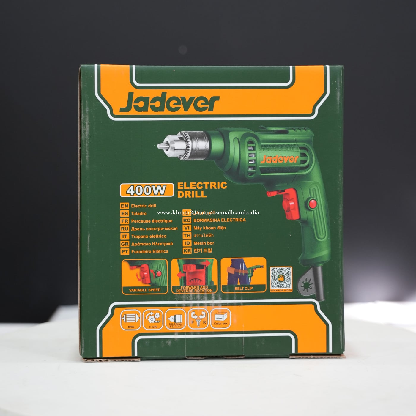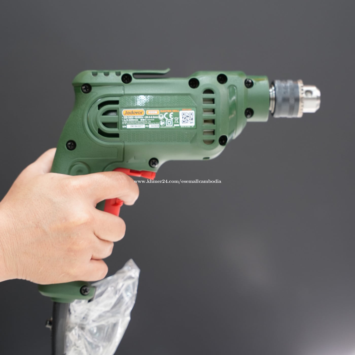Jadever ម៉ាស៊ីនខួងអគ្គិសនី 400W (Electric Drill) (JDED15401) តម្លៃ៖ $19.08 ស្ថានភាព៖ ថ្មី 100% (មានប្រអប់ដើម) ម៉ាក៖ Jadever ប្រភេទ៖ ម៉ាស៊ីនខួងអគ្គិសនី / Electric Drill កម្លាំងភ្លើង៖ 400W វ៉ុល៖ 220–240V ~ 50/60Hz ពណ៌នាផលិតផល ម៉ាស៊ីនខួងអគ្គិសនី Jadever 400W ជាម៉ាស៊ីនខួងទំហំតូច កាន់ងាយ និងប្រើប្រាស់ស្រួល សាកសមសម្រាប់ការងារខួងឈើ ដែក និងសម្ភារៈទូទៅ។ មានល្បឿនអាចកំណត់បាន និងមុខងារបង្វិលទៅមុខ/ថយក្រោយ ជួយឲ្យការងារងាយ និងមានភាពត្រឹមត្រូវ។ លក្ខណៈពិសេស ម៉ូទ័រ 400W ល្បឿនអាចកំណត់បាន (Variable Speed) បង្វិលទៅមុខ និងថយក្រោយ (Forward / Reverse) Chuck ដែក រឹងមាំ ដៃកាន់រចនាឡើងប្រើងាយ និងសុវត្ថិភាព សាកសមសម្រាប់ការប្រើប្រាស់ក្នុងផ្ទះ និងជាងទូទៅ កញ្ចប់រួមមាន ម៉ាស៊ីនខួងអគ្គិសនី Jadever 400W Chuck Key សៀវភៅណែនាំ