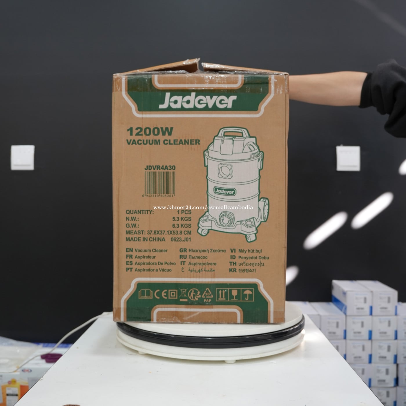 Jadever ម៉ាស៊ីនបូមធូលី 1200W (Dry & Wet Vacuum Cleaner) (JDVR4A30) តម្លៃ៖ $76.80 ស្ថានភាព៖ ថ្មី 100% មានប្រអប់ដើម ម៉ាក៖ Jadever ម៉ូដែល៖ JDVR4A30 កម្លាំង៖ 1200W ពណ៌នាផលិតផល ម៉ាស៊ីនបូមធូលី Jadever 1200W ជាម៉ាស៊ីនបូមធូលីប្រភេទ Dry & Wet អាចប្រើបានទាំងធូលីស្ងួត និងទឹក។ រចនារឹងមាំ ដុំធុងដែកអ៊ីណុក សម្រាប់ប្រើប្រាស់ក្នុងផ្ទះ រោងជាង ហាង ឬកន្លែងសំណង់។ មានកម្លាំងបូមខ្លាំង ប្រើប្រាស់ងាយ និងអាចផ្លាស់ទីបានងាយស្រួល។ លក្ខណៈបច្ចេកទេស កម្លាំងម៉ូទ័រ៖ 1200W ប្រភេទ៖ Vacuum Cleaner (Dry & Wet) វ៉ុល៖ 220–240V / 50Hz ចំនួនក្នុងប្រអប់៖ 1 គ្រឿង ទំងន់សុទ្ធ (N.W.)៖ 5.3 Kg ទំងន់សរុប (G.W.)៖ 6.3 Kg ទំហំប្រអប់៖ 37.8 × 37.1 × 53.8 សម លក្ខណៈពិសេស អាចបូមធូលីស្ងួត និងទឹក ធុងដែកអ៊ីណុក រឹងមាំ ងាយសម្អាត កម្លាំងបូមខ្លាំង សម្រាប់ការងារធ្ងន់ មានកង់ សម្រាប់រុញផ្លាស់ទីងាយ មានបំពង់ និងឧបករណ៍ភ្ជាប់មកជាមួយ 📦 អ្វីមានក្នុងប្រអប់ ម៉ាស៊ីនបូមធូលី Jadever 1200W បំពង់បូម និងខ្សែបំពង់ ក្បាលបូម និងគ្រឿងបន្លាស់ (តាមស្តង់ដារ) ប្រអប់ដើម