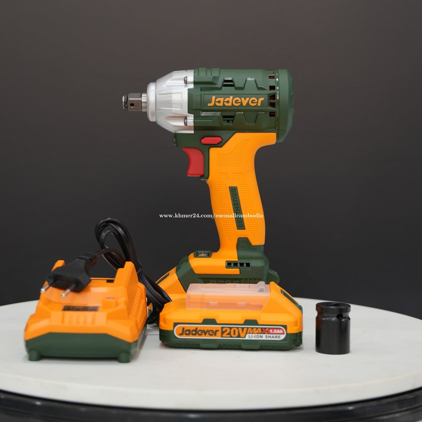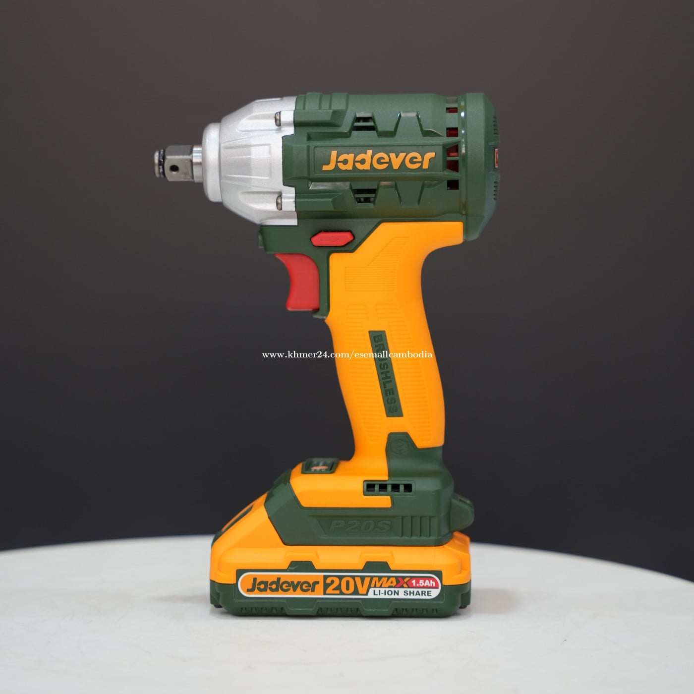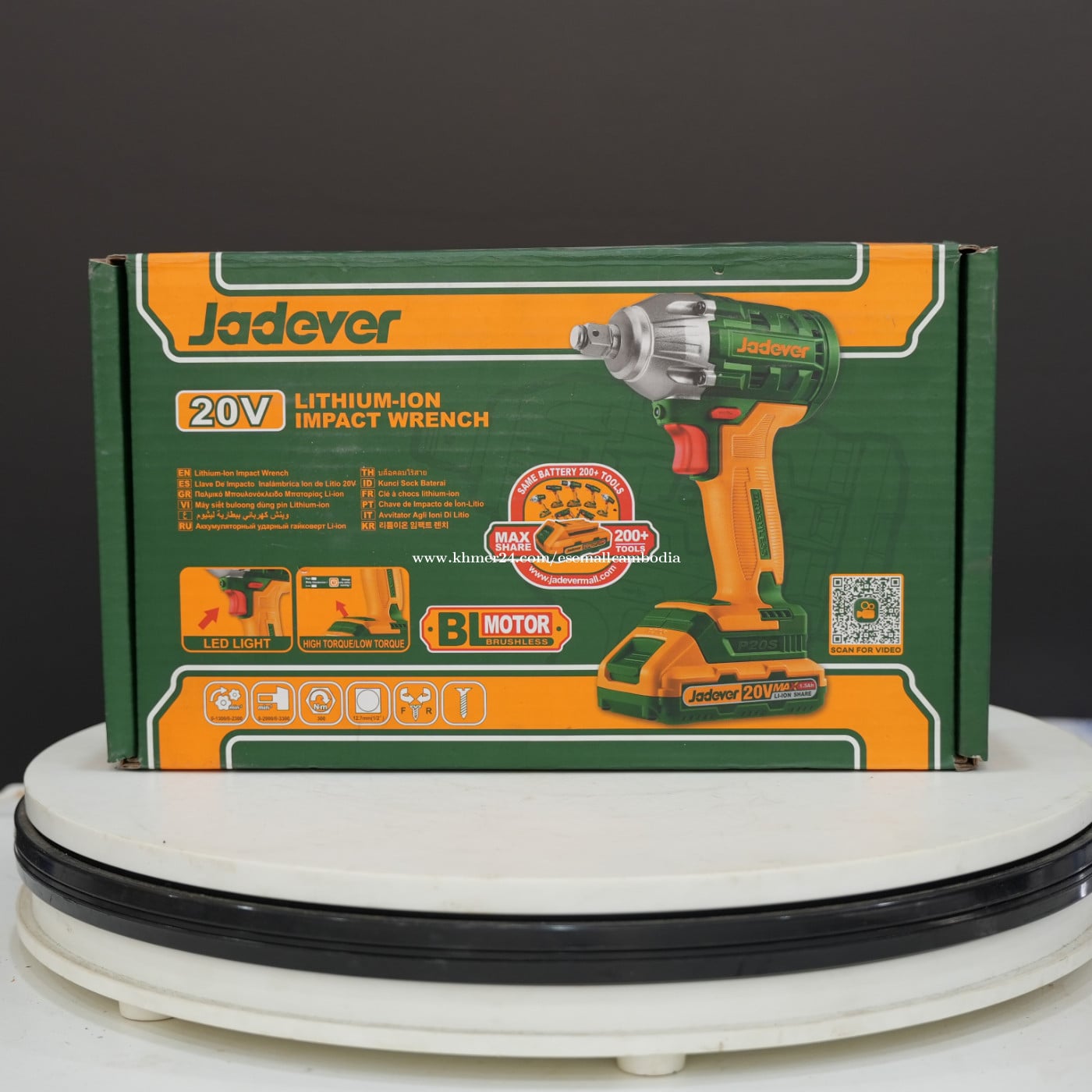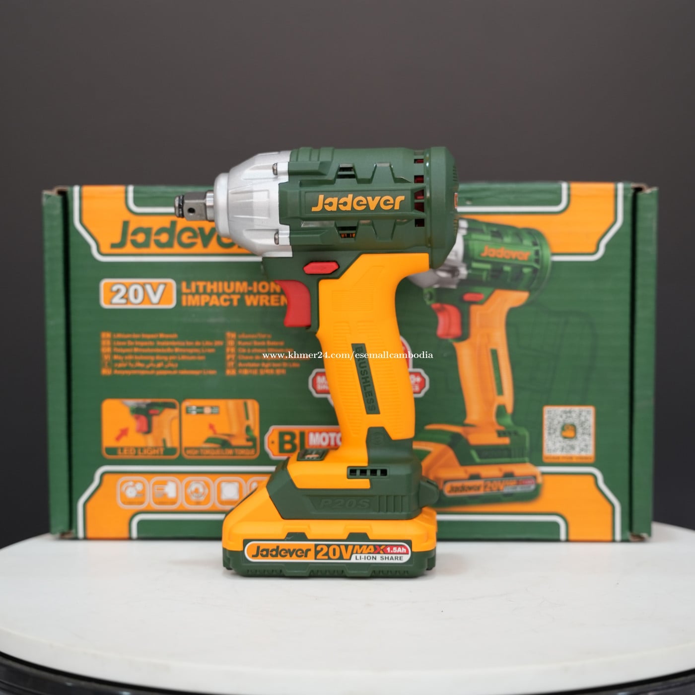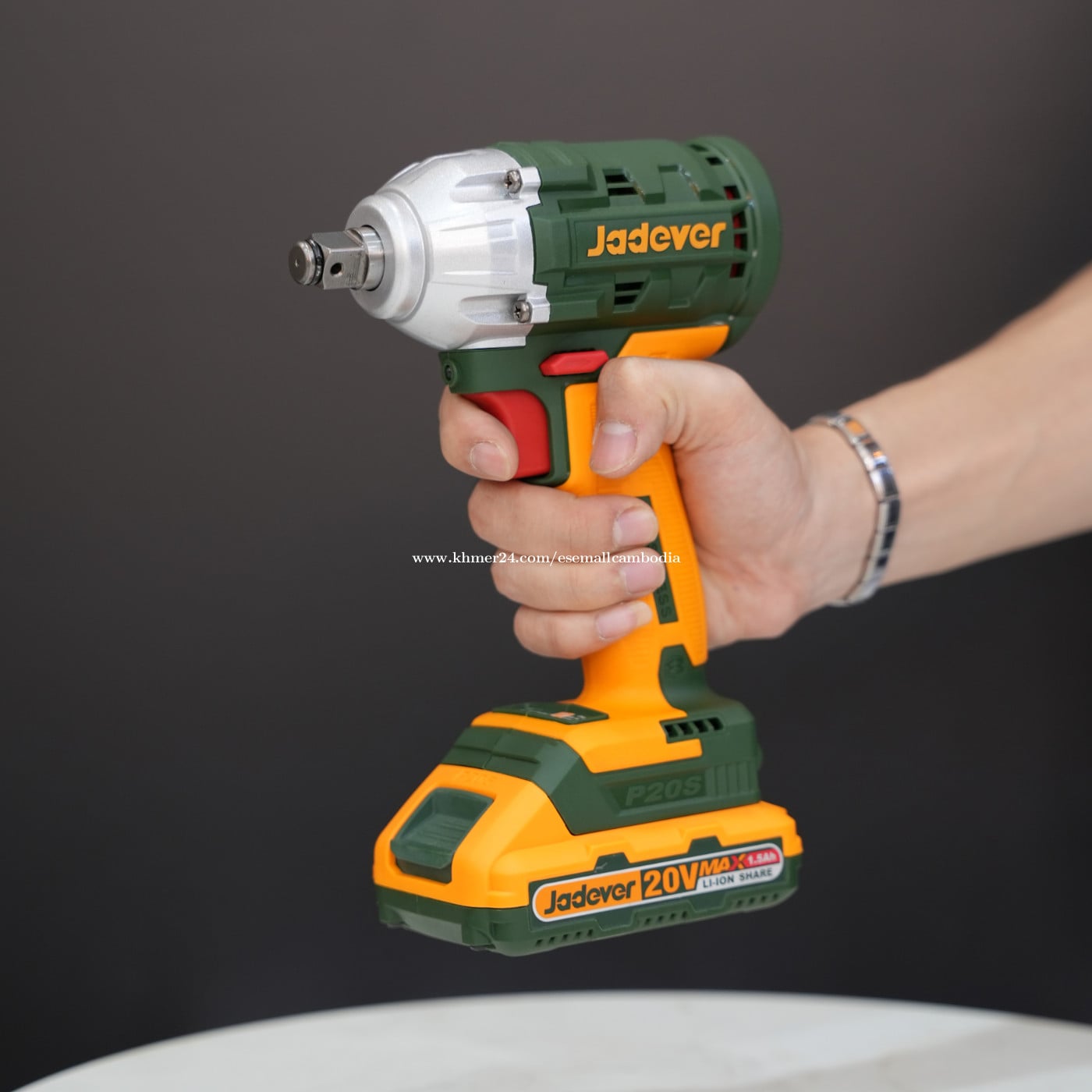 Jadever ម៉ាស៊ីនប៉ះដោះប៊ូលុង អាគុយ 20V (Brushless Impact Wrench) (JDCD1512) ប្រភេទផលិតផល: ម៉ាស៊ីនប៉ះដោះប៊ូលុង អាគុយ / Impact Wrench ម៉ាក: Jadever វ៉ុលអាគុយ: 20V Lithium-Ion ពណ៌នាផលិតផល ម៉ាស៊ីនប៉ះដោះប៊ូលុង Jadever 20V ជាម៉ាស៊ីនអាគុយប្រើម៉ូទ័រ Brushless ដែលមានកម្លាំងខ្លាំង ប្រើបានយូរ និងសន្សំថាមពល។ សាកសមសម្រាប់ការងារដោះ-បិទប៊ូលុងរថយន្ត ម៉ូតូ ម៉ាស៊ីន និងការងារសំណង់ទូទៅ។ រចនាអ ergonomic កាន់ងាយ មានអំពូល LED ជួយបំភ្លឺពេលធ្វើការនៅកន្លែងងងឹត។ លក្ខណៈពិសេស (Features) ម៉ូទ័រ Brushless – កម្លាំងខ្លាំង និងអាយុកាលយូរ អាគុយ 20V Li-ion – ប្រើបានយូរ សាកលឿន មានអំពូល LED Light បំភ្លឺតំបន់ការងារ កាន់ងាយ មិនរអិល (Ergonomic Grip) សមស្របសម្រាប់ការងារជួសជុល និងសំណង់ អ្វីដែលមានក្នុងប្រអប់ ម៉ាស៊ីនប៉ះដោះប៊ូលុង Jadever 20V អាគុយ 20V ឧបករណ៍សាកអាគុយ ប៊ិច/សោកសម្រាប់ប៊ូលុង ប្រអប់ដាក់ (Color Box)