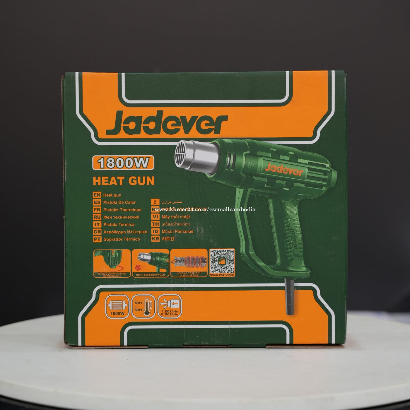 Jadever ម៉ាស៊ីនផ្លុំខ្យល់ក្តៅ 1800W (Heat Gun) (JDHG1514) តម្លៃ៖ $15.00 ស្ថានភាព៖ ថ្មី 100% (មានប្រអប់ដើម) ម៉ាក៖ Jadever ប្រភេទ៖ Heat Gun / ម៉ាស៊ីនផ្លុំក្តៅ កម្លាំងភ្លើង៖ 1800W វ៉ុល៖ 220–240V ~ 50/60Hz ពណ៌នាផលិតផល ម៉ាស៊ីនផ្លុំខ្យល់ក្តៅ Jadever 1800W សម្រាប់ការងារដកថ្នាំលាប បង្រួមប្លាស្ទិក កម្ដៅខ្សែភ្លើង ឬការងារជួសជុលផ្សេងៗ។ ម៉ាស៊ីនមានកម្លាំងខ្លាំង កាន់ងាយ និងប្រើប្រាស់បានស្ថេរភាព សាកសមសម្រាប់ជាង និងការប្រើប្រាស់ទូទៅ។ លក្ខណៈពិសេស ម៉ូទ័រ 1800W កម្លាំងខ្លាំង អាចកំណត់កម្រិតកំដៅបាន ខ្យល់ផ្លុំចេញមានស្ថេរភាព ដៃកាន់រចនាឡើងប្រើងាយ និងសុវត្ថិភាព សាកសមសម្រាប់ការងារសំណង់ និងជាងជួសជុល កញ្ចប់រួមមាន ម៉ាស៊ីនផ្លុំខ្យល់ក្តៅ Jadever ក្បាលផ្លុំ (Nozzle) សៀវភៅណែនាំ