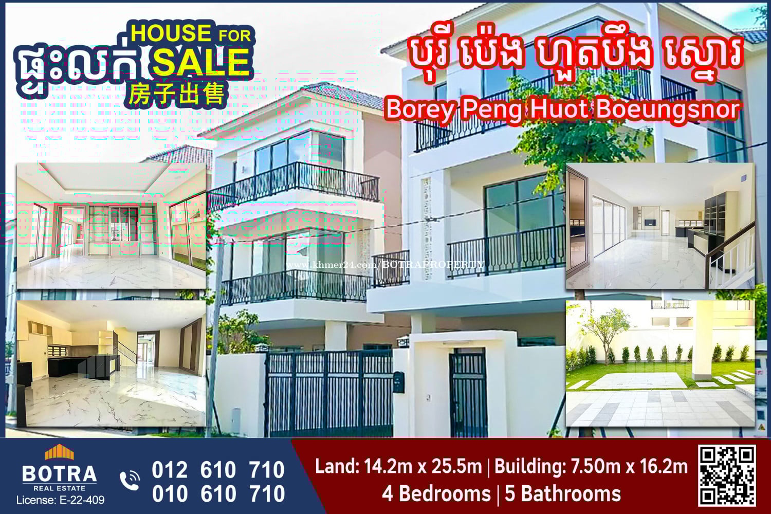 ๐กJasmine Villa Large Land for Sale ๐Borey Peng Huot Boeung Snor Poil 1 ๐ต Special Selling Price โข House Size: 7.50m x 16.2m โข Land Size: 14.2m x 25.5m โข Bedroom: 4 โข Bathroom: 5 โโโโโโโโโ Contact us now ๐ 012610xxxClick To Call (Cellcard) ๐ 010610xxxClick To Call (Smart) โถ๏ธ t.me/BotraRealEstate (Chat)