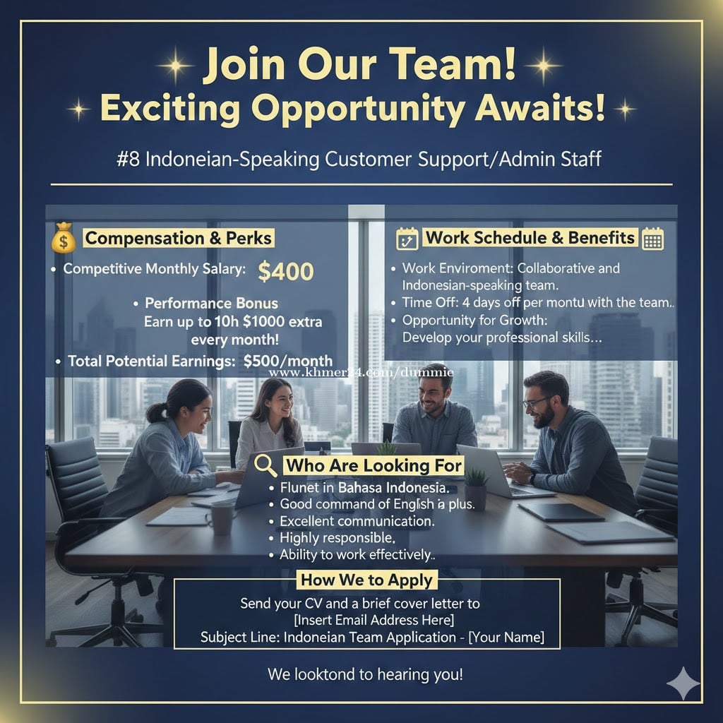 ដំណឹងជ្រេីសរេីសបុគ្គលិកទាំង3ភេទ 10 នាក់ តម្រូវចេះអង្លេសនិយាយបាននឹងcomputer ធ្វេីការជាមួយindo ផ្នែកដកដាក់លុយ Deposit withdraw Salary 400+100$ Off4day 4day ធ្វេីការ12ម៉ោង គ្មានកន្លែងស្នាក់នៅ យកទាំងមានបទពិសោធន៍នឹងអត់បទពិសោធន៍ តេឡេក្រាម @Lazarus_30 កំពង់សោម